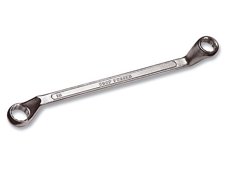 Ключ двухсторонний накидной коленчатый предназначен для работы с шестигранным и четырехгранным крепежом соответствующих размеров. Изготовлен из хромванадиевой стали, матовая полировка.Твердость рабочей части 44-48HRc.