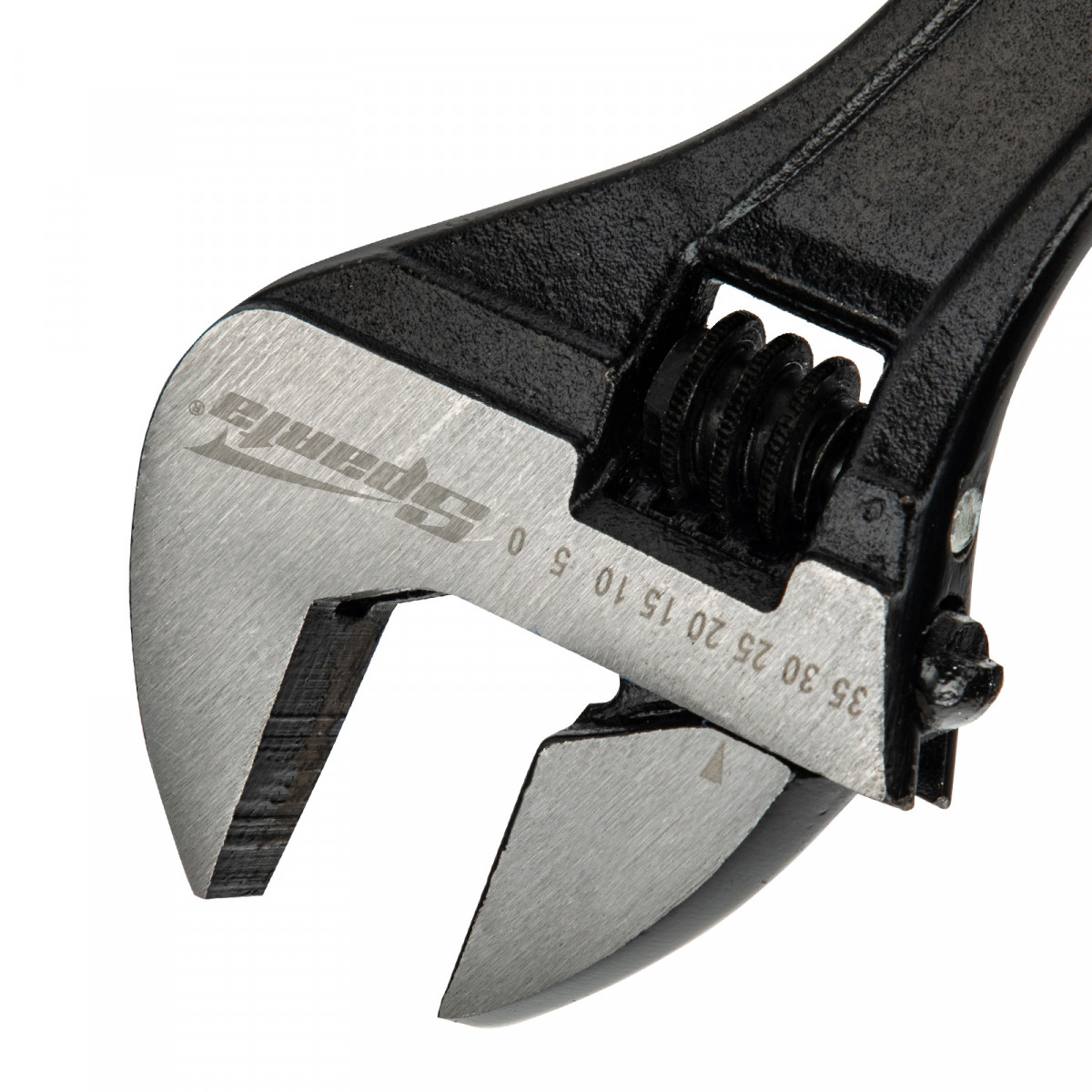 Разводной ключ Sparta 15544 длиной 300 мм, с двухкомпонентной рукояткой, имеет регулируемый зев и подходит для работы с любыми крепежными деталями диаметром до 35 мм, в том числе нестандартными. Инструмент заменяет целый комплект гаечных ключей и пригодится для бытового применения.
