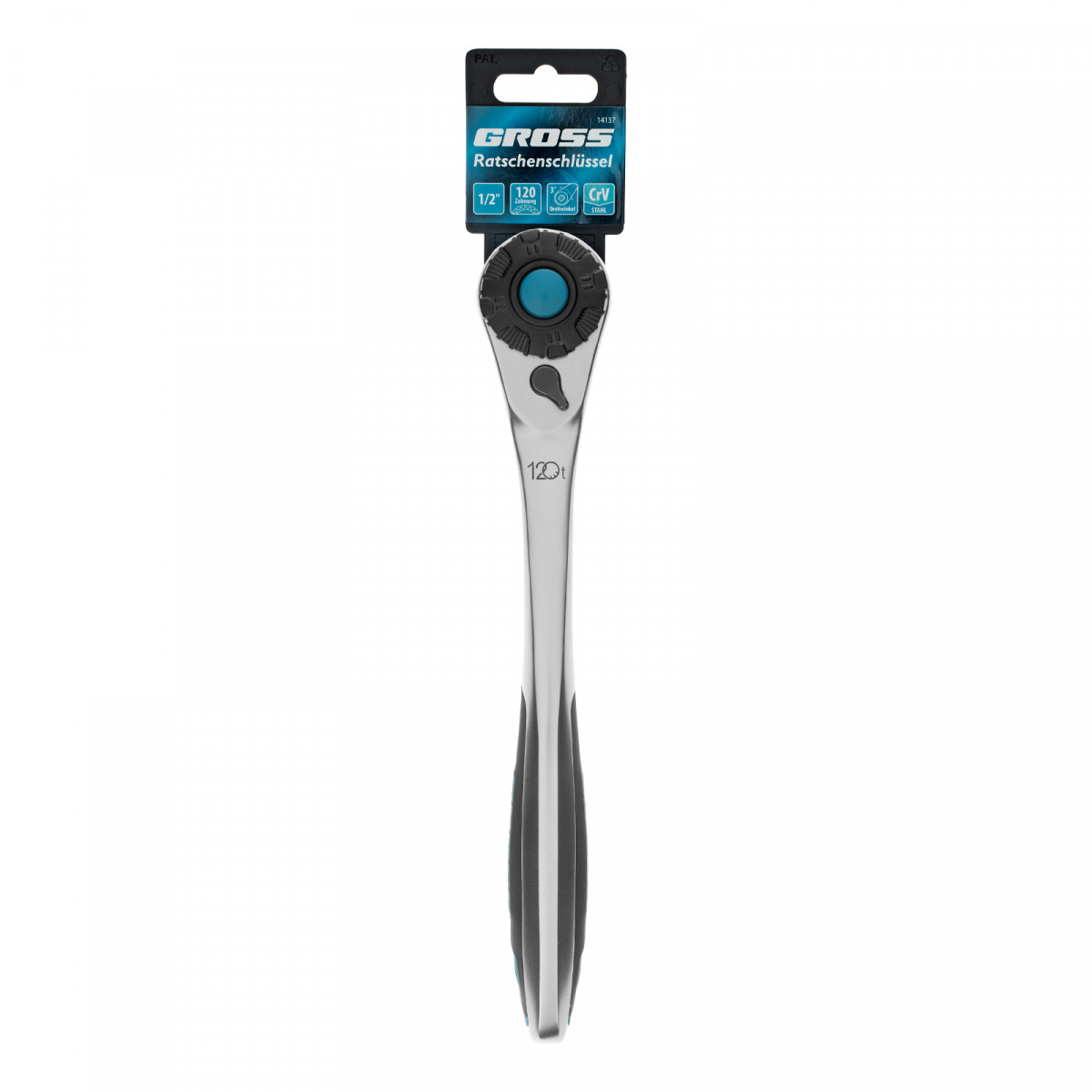 Ключ-трещотка 1/2", CrV, 120 зубьев, с быстрым сбросом, цельнометаллический, хром Gross