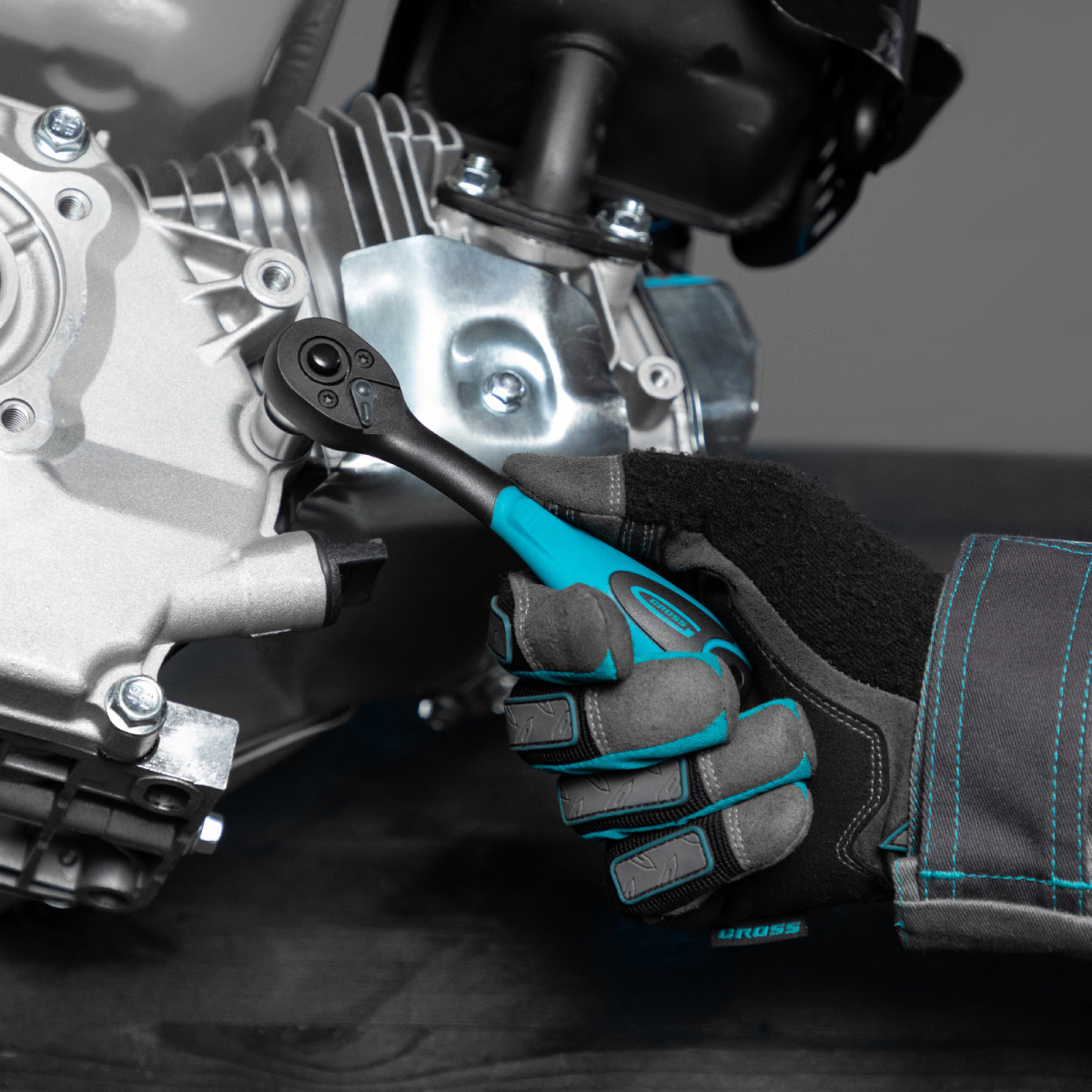 Ключ-трещотка Gross Comfort 14086 из стали CrV, с 2-компонентной рукояткой, присоединительным квадратом 1/4 дюйма и функцией быстрого сброса, оснащен храповым механизмом с 72 зубцами для быстрого и плавного закручивания/откручивания резьбовых крепежей. Удобен для работы в ограниченном пространстве, т.к. шаг трещотки составляет всего 5 градусов. Трещоточный ключ используется в сервисных центрах, авторемонтных мастерских, будет полезен при монтаже оборудования, также пригодится дома, в гараже или на даче.