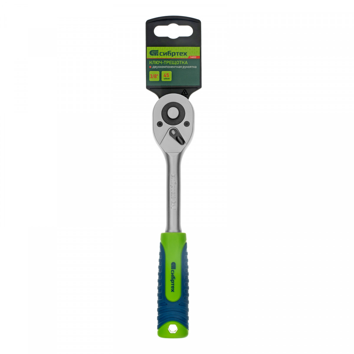 Ключ-трещотка 3/8", 45 зубьев, с быстрым сбросом, матовый хром Сибртех