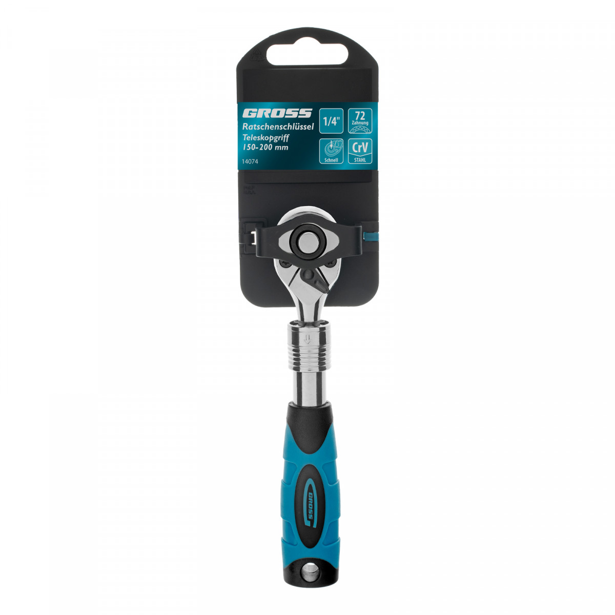 Ключ-трещотка телескопический 1/4", 150-200 мм, CrV, 72 зуба, с быстрым сбросом, хром Gross