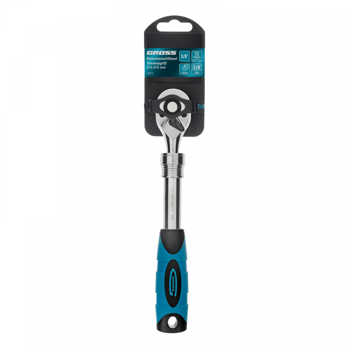 Ключ-трещотка телескопический 3/8", 215-315 мм, CrV, 72 зуба, с быстрым сбросом, хром Gross