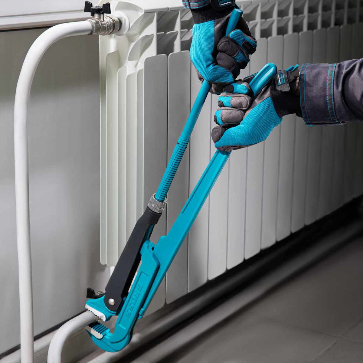 Самоблокируемый захват труб и деталей благодаря зубьям прогрессивной формы.