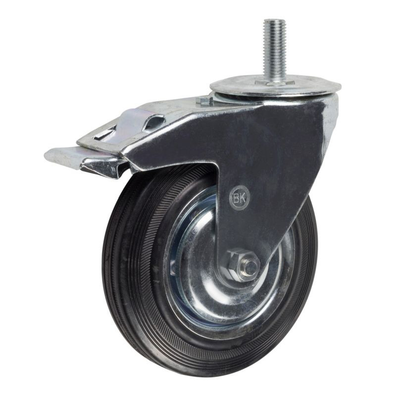Колесная опора 75 мм болт, поворотная, тормоз, черная резина роликоподшибник