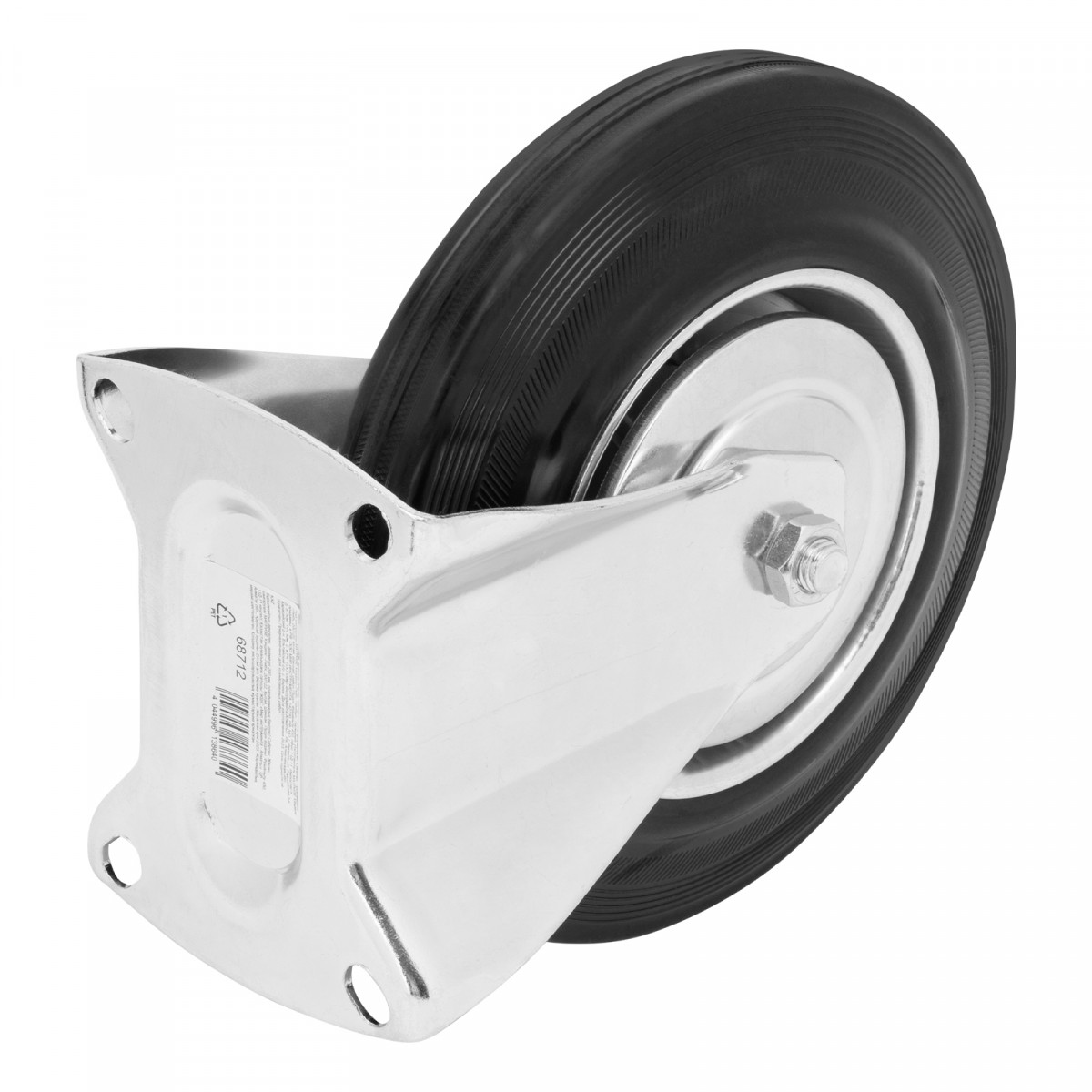 Колесо неповоротное Сибртех 68712 диаметром 200 мм, с платформенным креплением, обладает грузоподъемностью 165 кг и устанавливается на ручные тележки. Благодаря шине из прочной резины не повреждает поверхность и не издает шума при движении. Колесо служит для перемещения грузов по прямолинейной траектории в производственных и складских помещениях, а также под открытым небом.