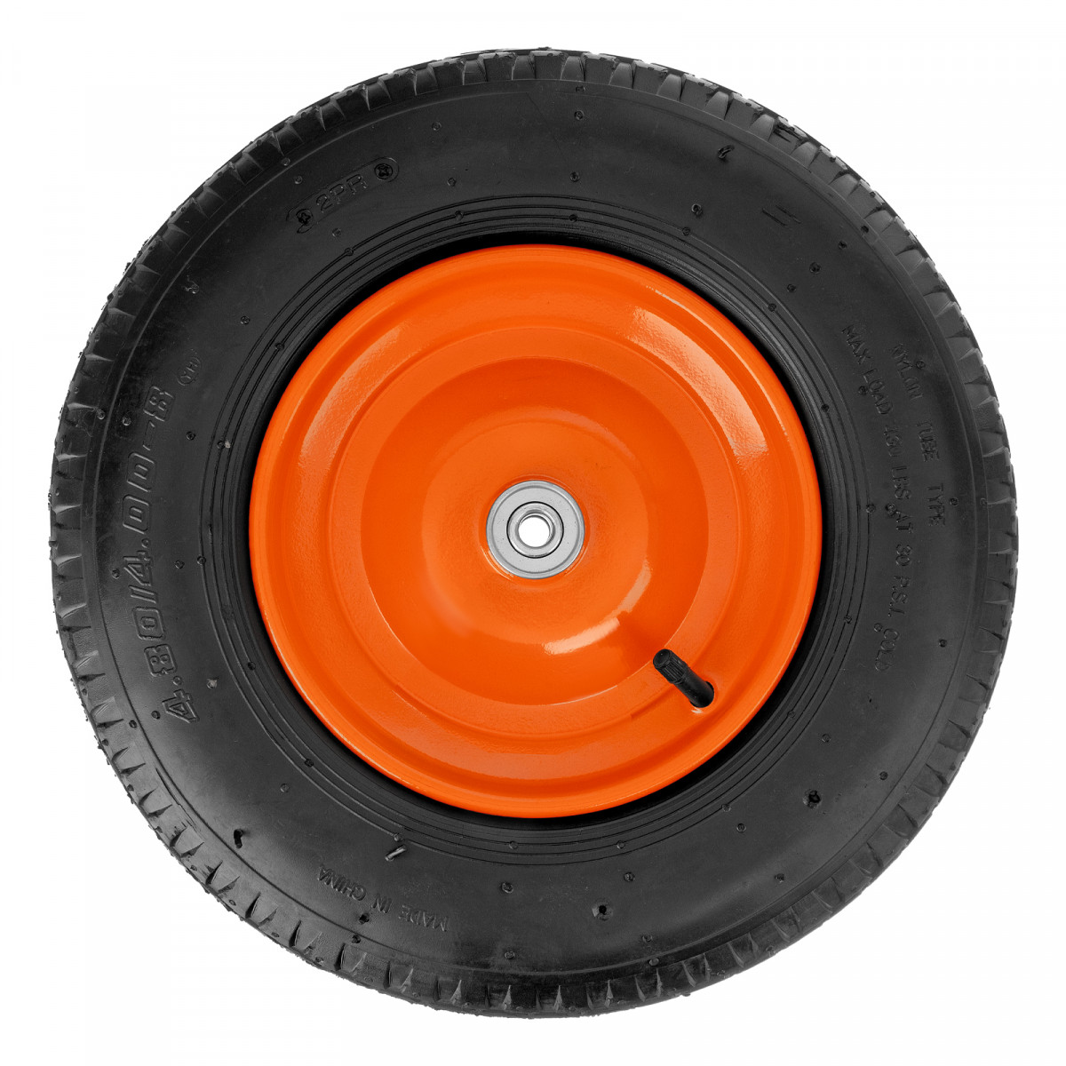 • Комфортная работа — пневматическое колесо эффективно поглощает вибрации даже при полной загрузке тачки.