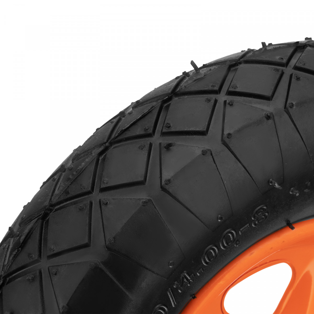 • Двухслойная покрышка с протектором — колесо устойчиво к повреждениям и обеспечивает маневренность тачки.
