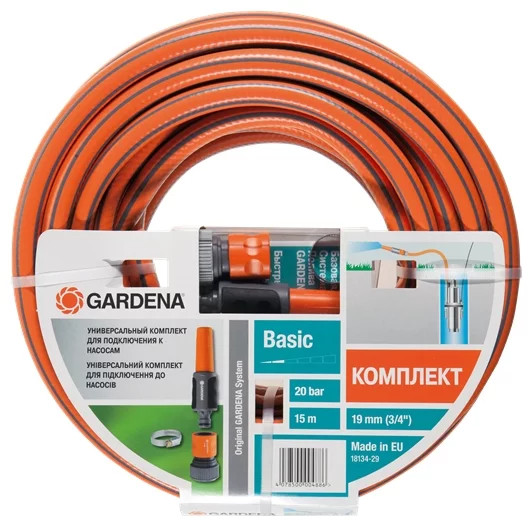 шланг, наконечник для полива Classic 18300-20, хомут для крепления шланга к насосу, коннектор стандартный 3/4"