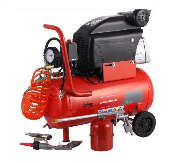 Компрессор FUBAG AIR MASTER KIT + 6 предметов 61431380, благодаря большому комплекту поставки, может применяться для самых различных работ - от накачки шин до окрашивания поверхности. Данная модель оснащена надежным электрическим двигателем, имеющим защиту от перегрева, а также систему автономного повторного пуска. Агрегат работает от однофазной электрической сети, потребляемая мощность - 1500 Вт.