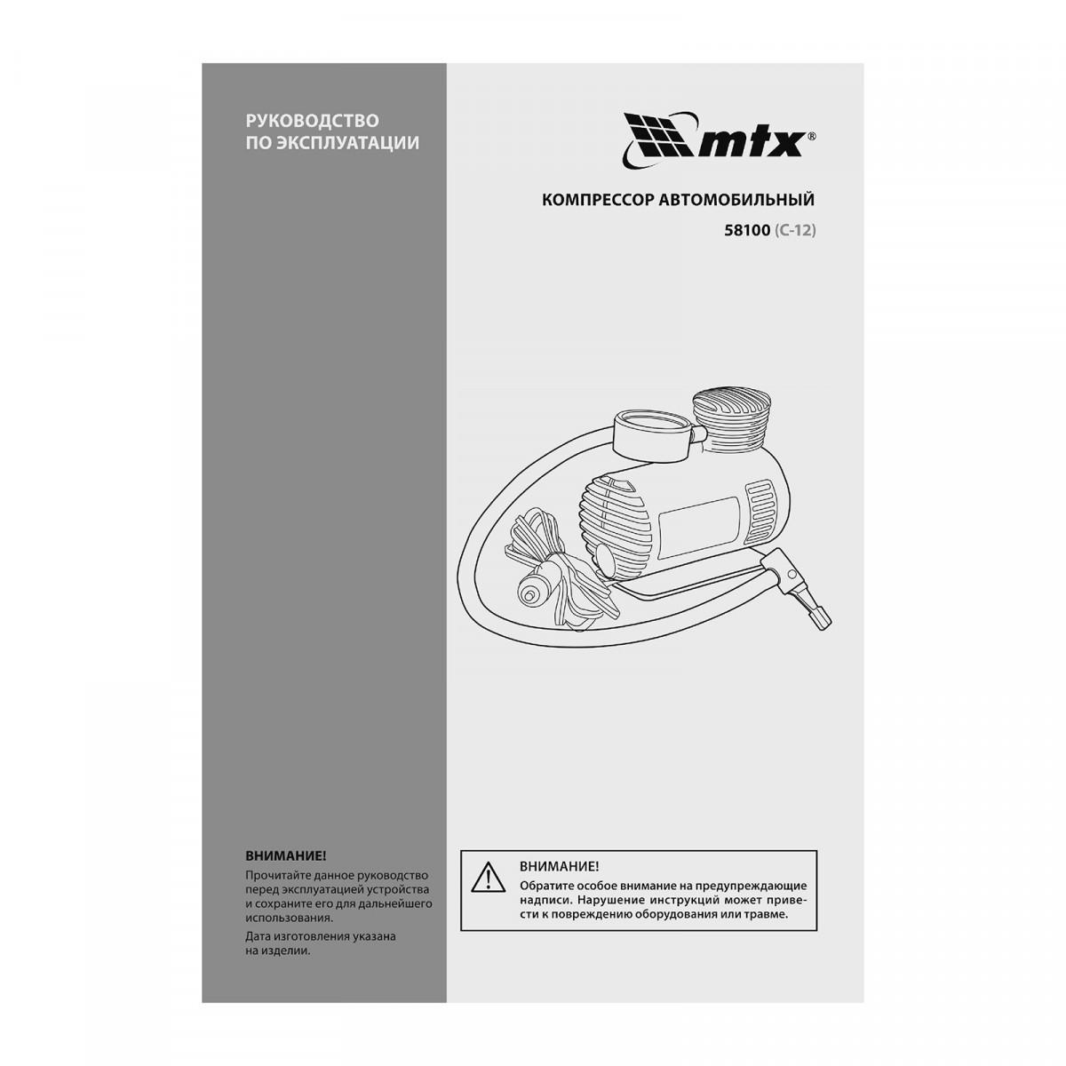 Компрессор автомобильный С-12, 12 В, 17 атм., 12 л/мин// MTX