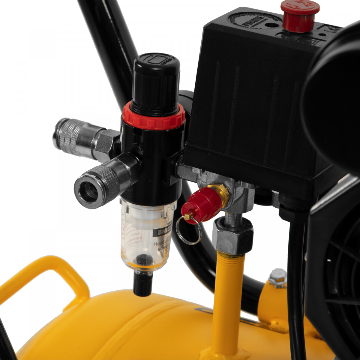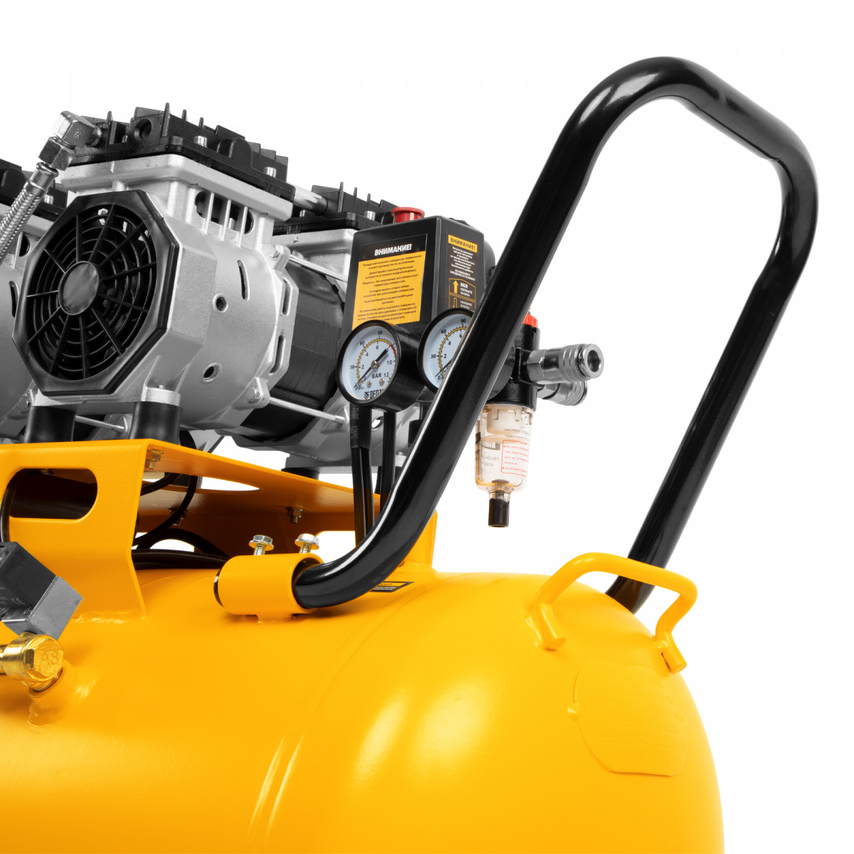 • Контроль давления в ресивере и на выходной магистрали — компрессор оборудован двумя манометрами.