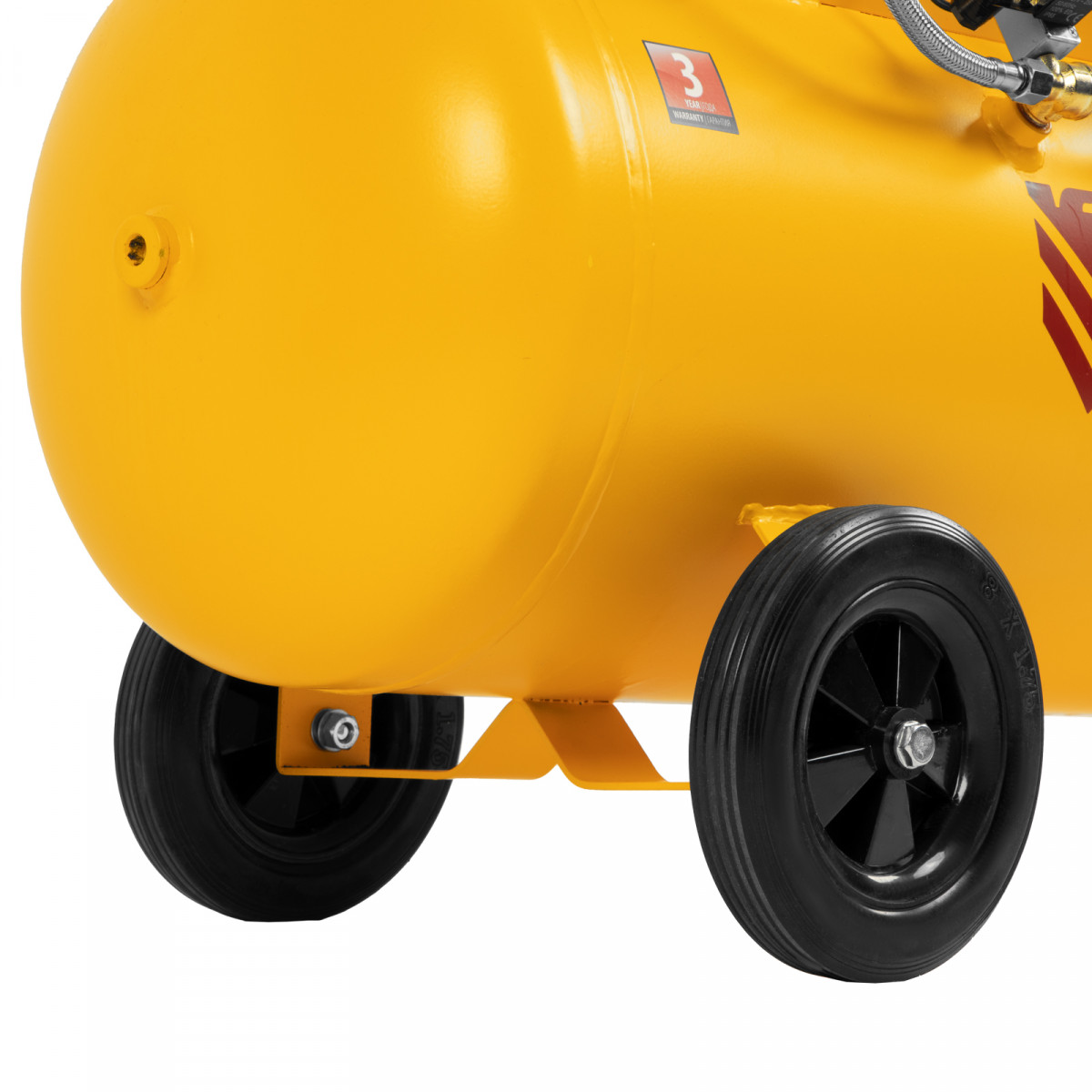 • Мобильность — компрессор оборудован ручкой и 3 колесами (из них 1 поворотное) для удобного разворота и перемещения.