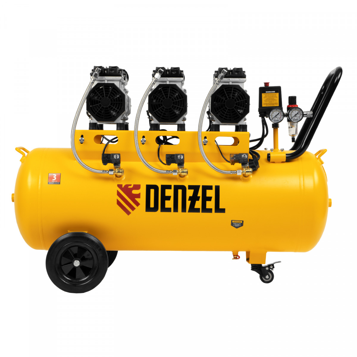 Компрессор безмасляный, малошумный DLS 1800/100,1800 Вт, 3x600, 100 л, 345 л/мин Denzel