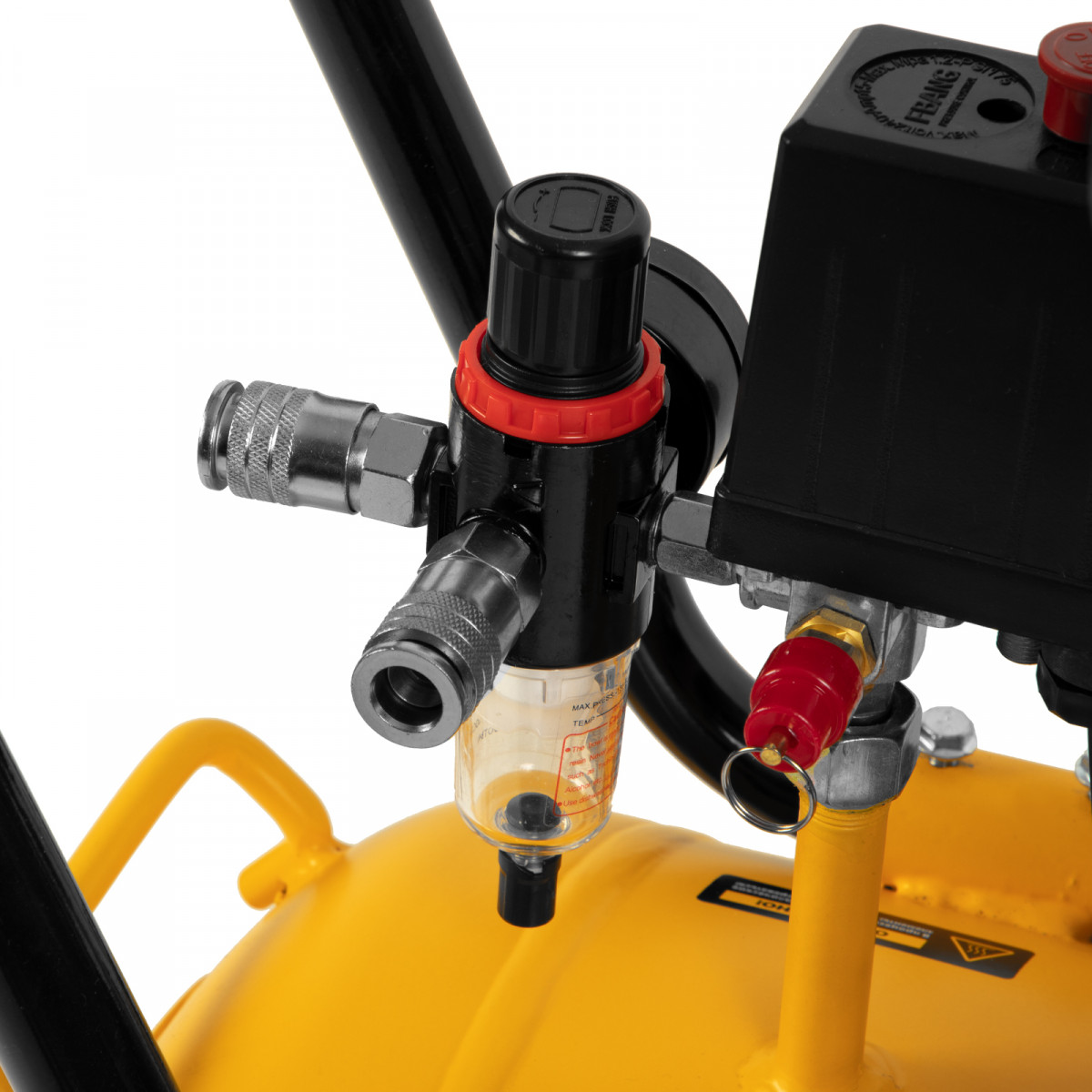 • Контроль давления в ресивере и на выходной магистрали — компрессор оборудован двумя манометрами.