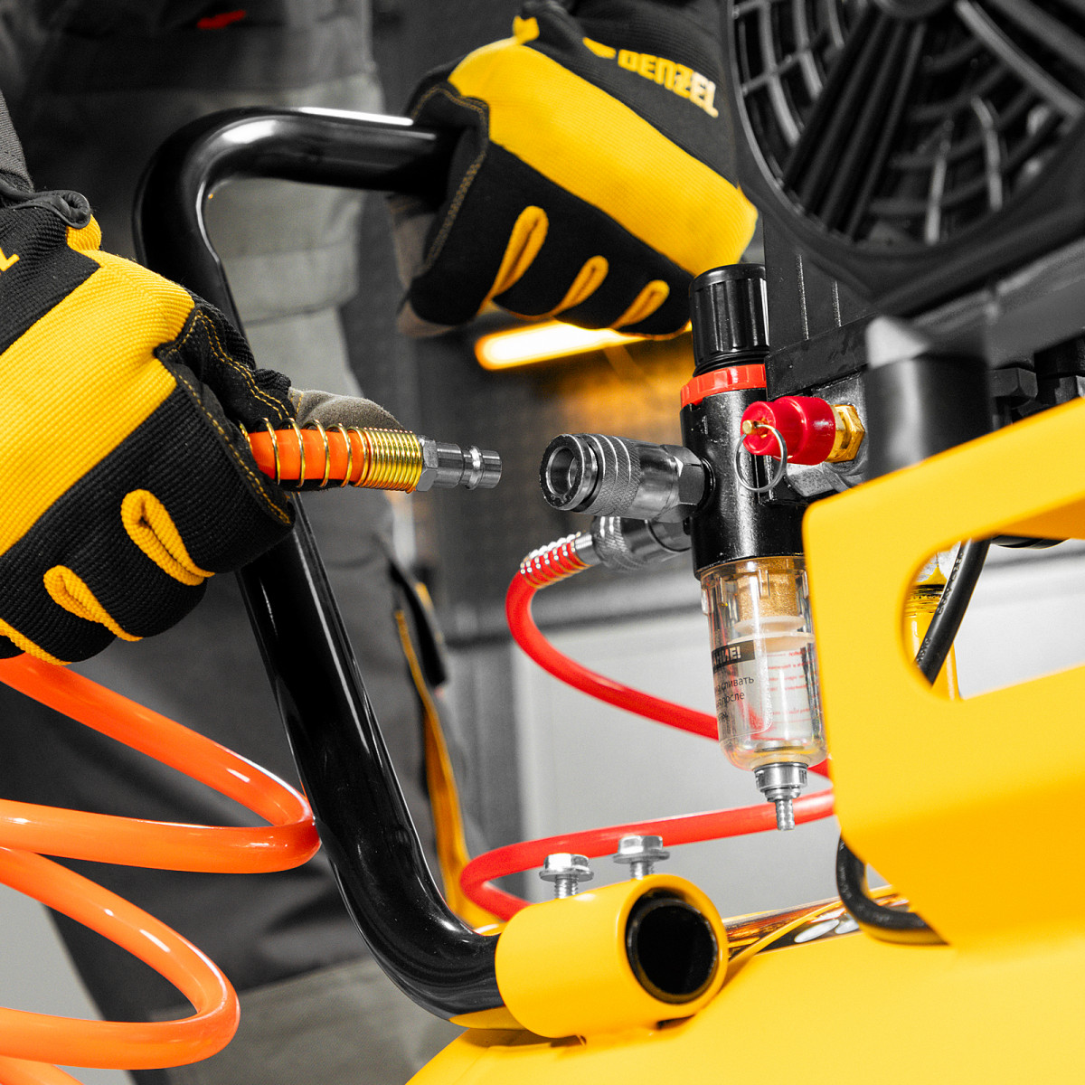 • Простая подготовка к работе — благодаря быстросъемному выходному коннектору подключение пневмоинструмента занимает несколько секунд.