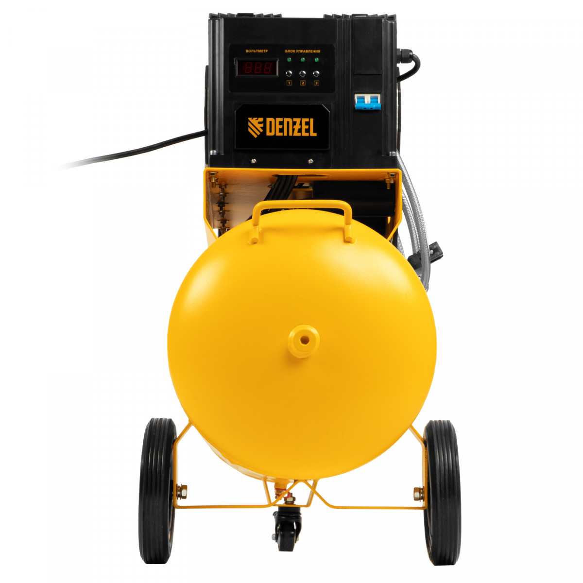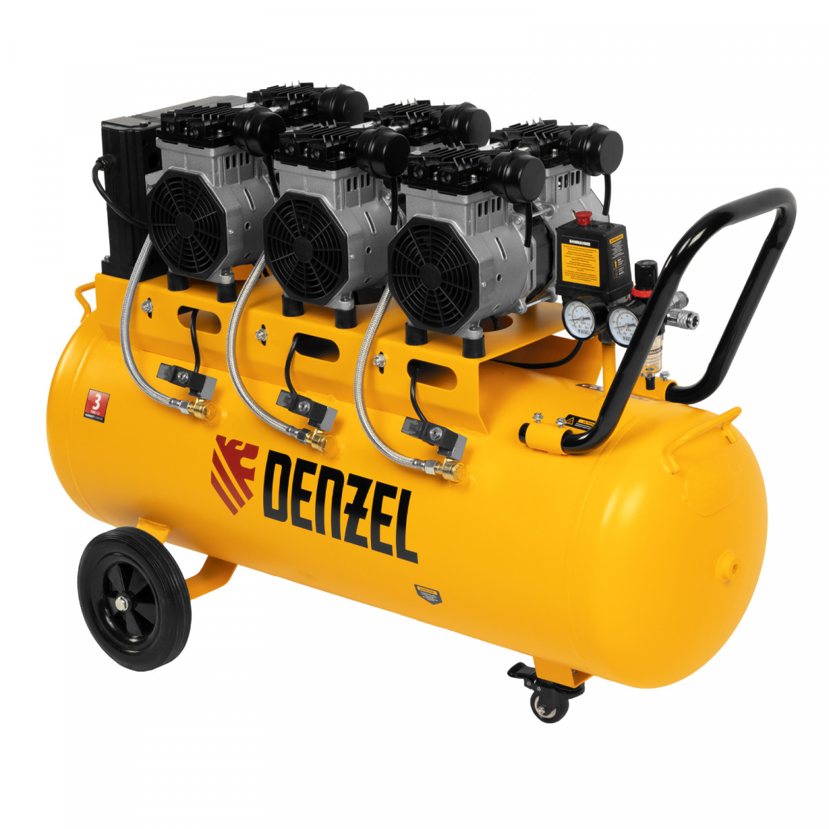 Компрессор безмасляный, малошумный DLS 3300/100, 3300 Вт,3x1100, 100 л, 570 л/мин ,блок управления Denzel