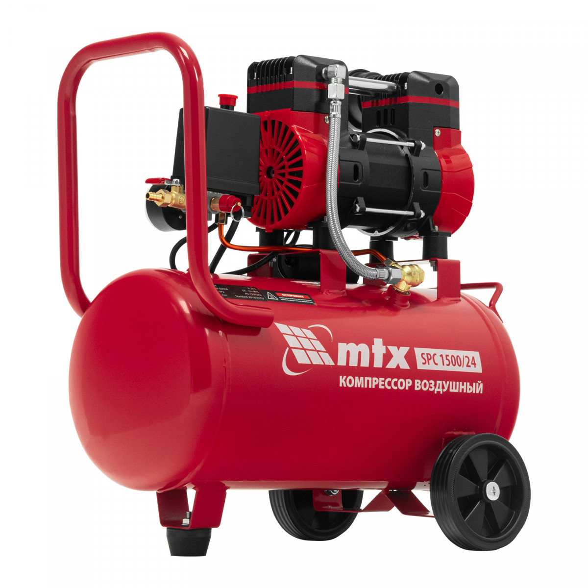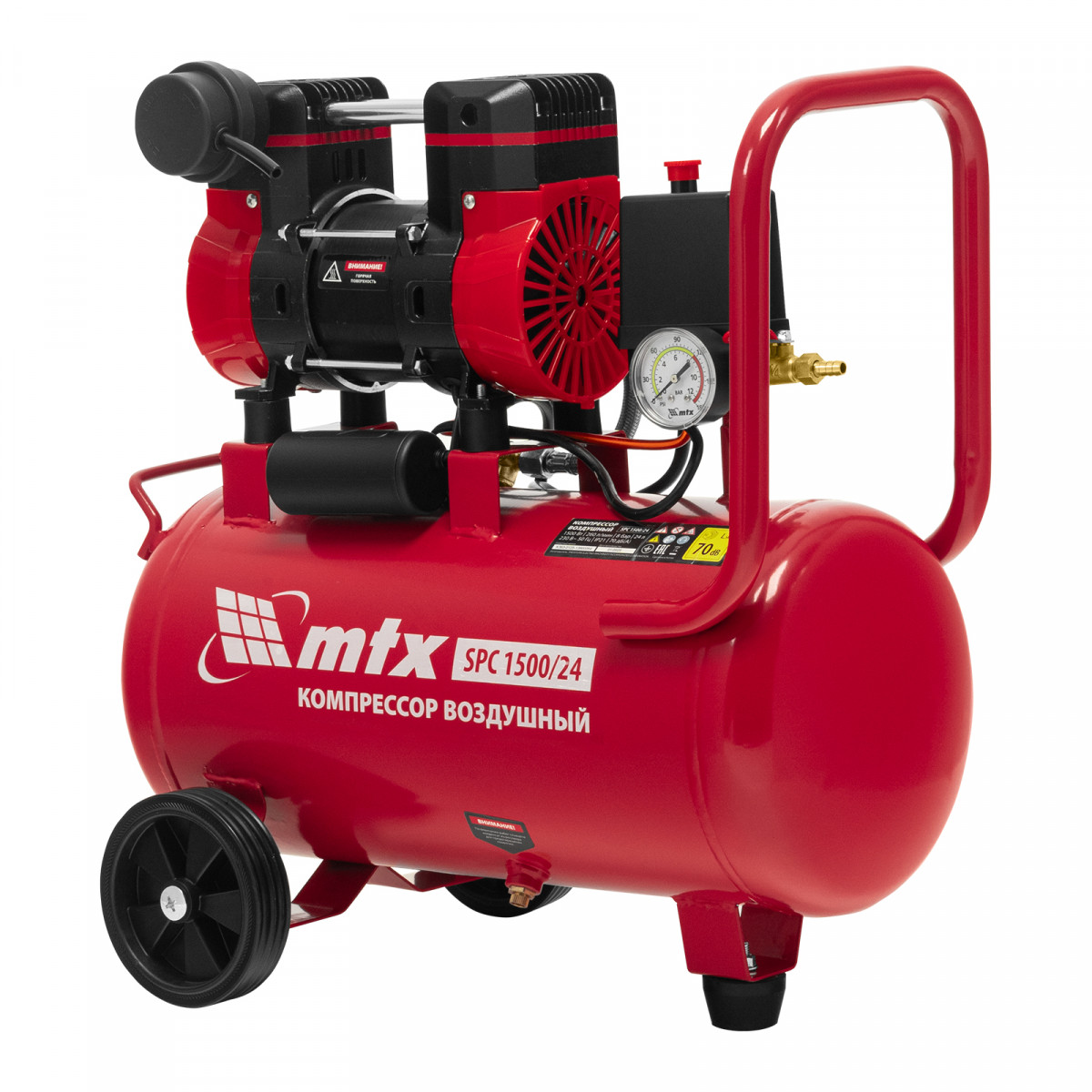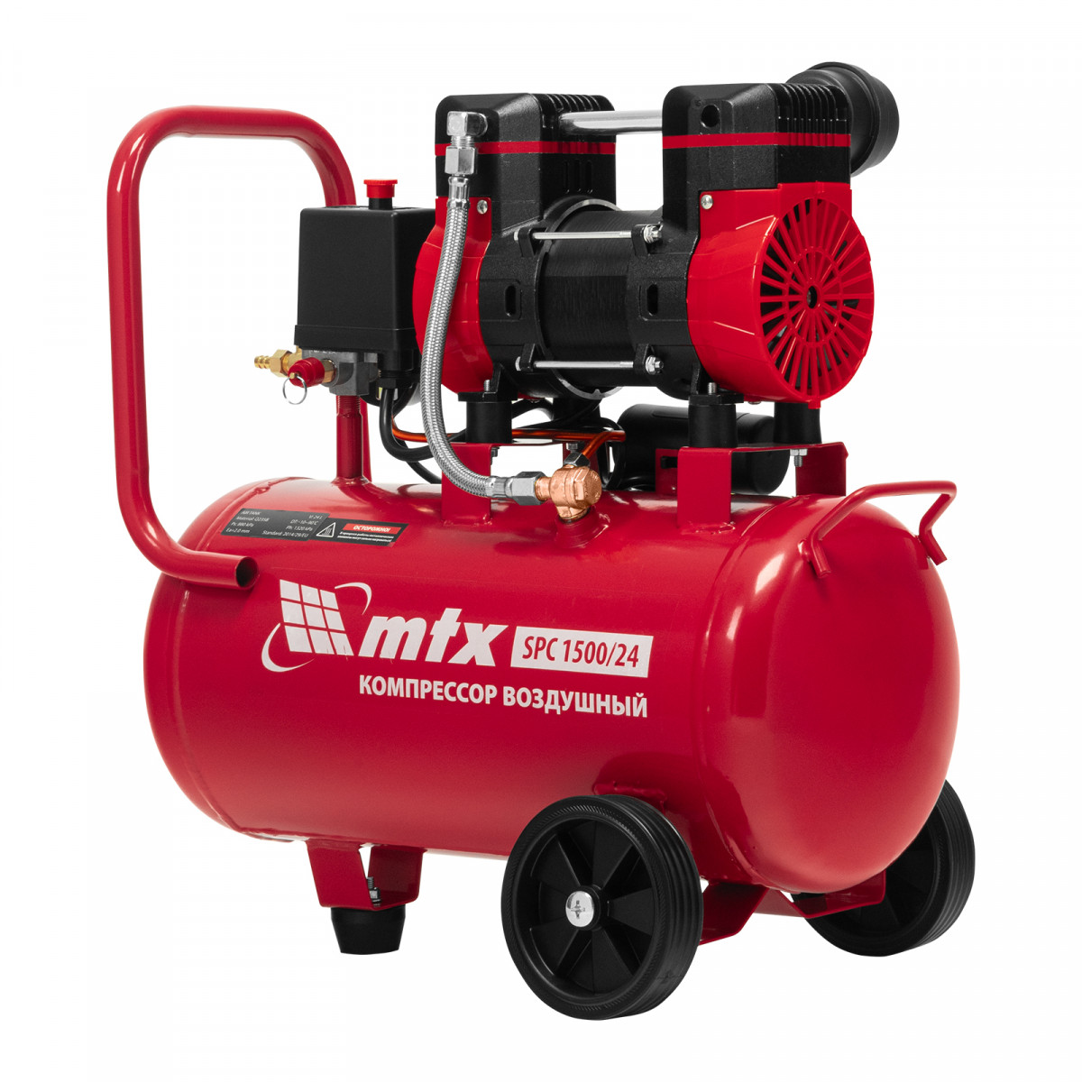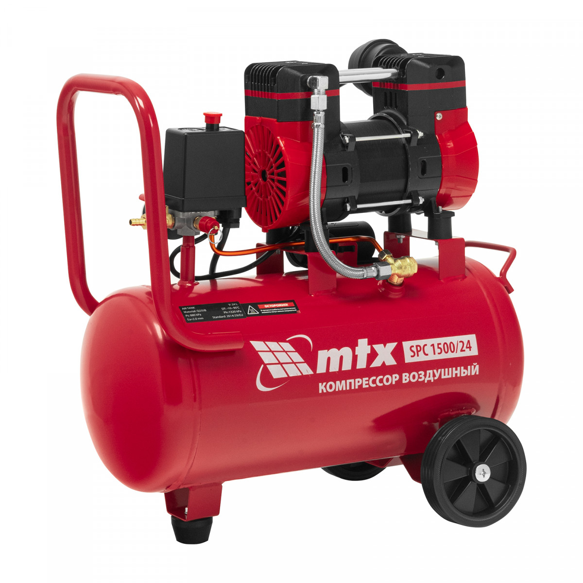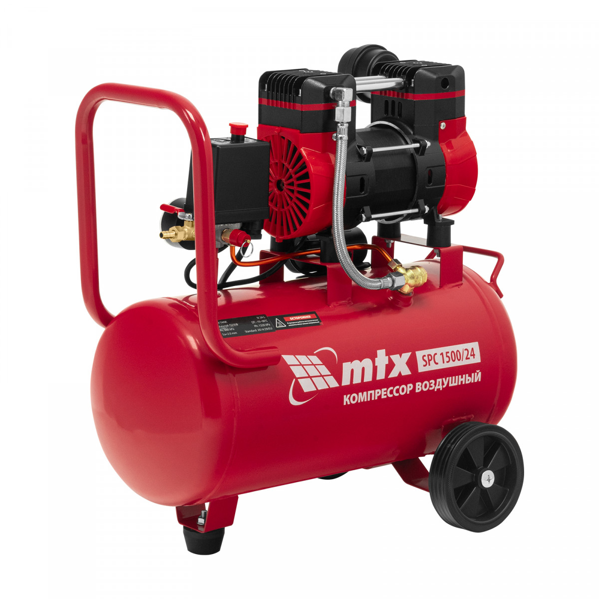 Компрессор безмасляный малошумный SPC 1500/24, 1500 Вт, ресивер 24 л, 260 л/мин MTX