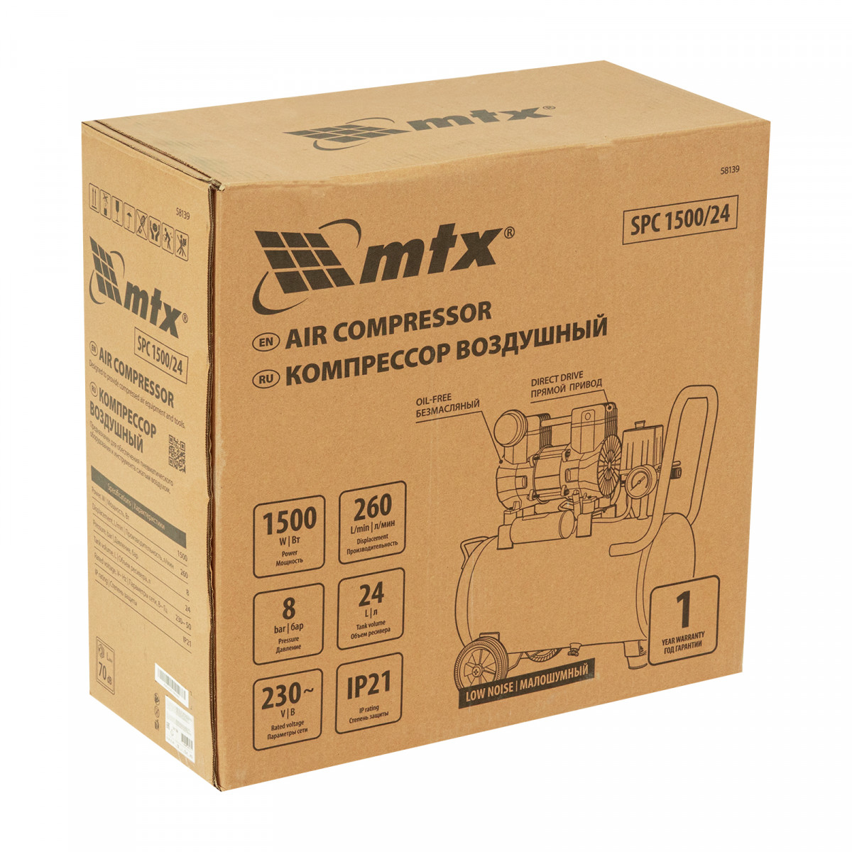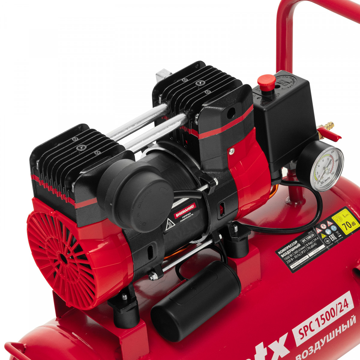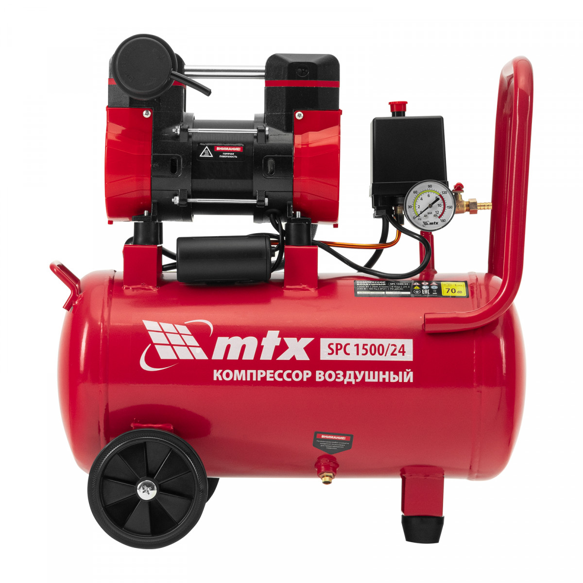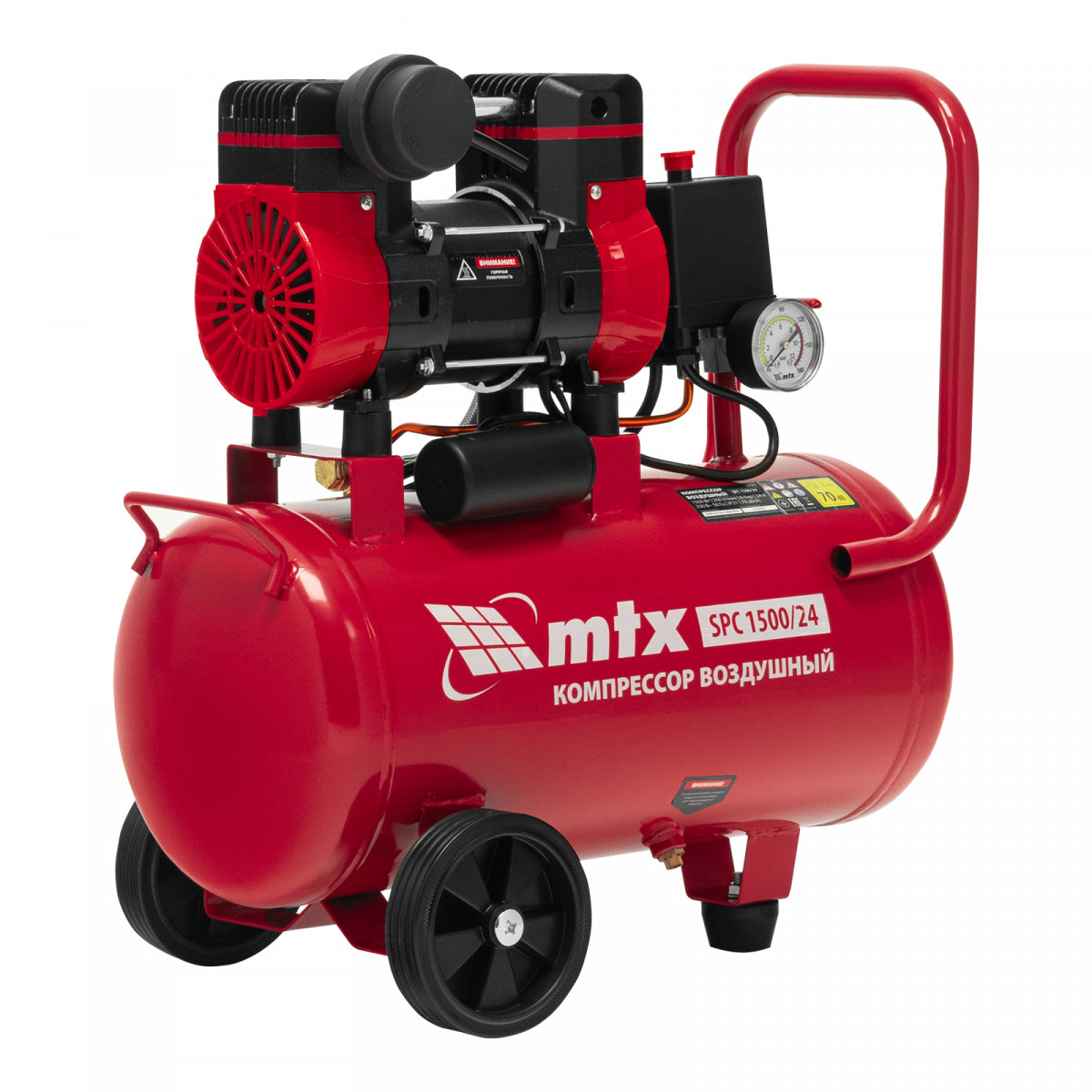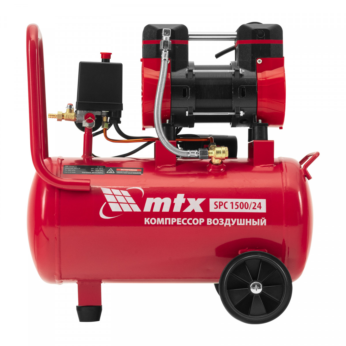 Компрессор безмасляный малошумный SPC 1500/24, 1500 Вт, ресивер 24 л, 260 л/мин MTX