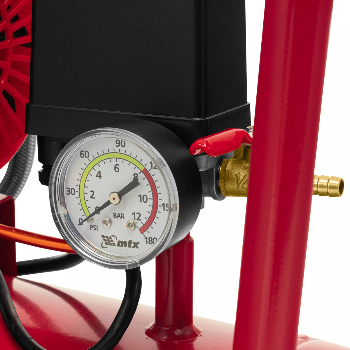 • Удобное использование — производитель предусмотрел манометр для отслеживания давления сжатого воздуха.