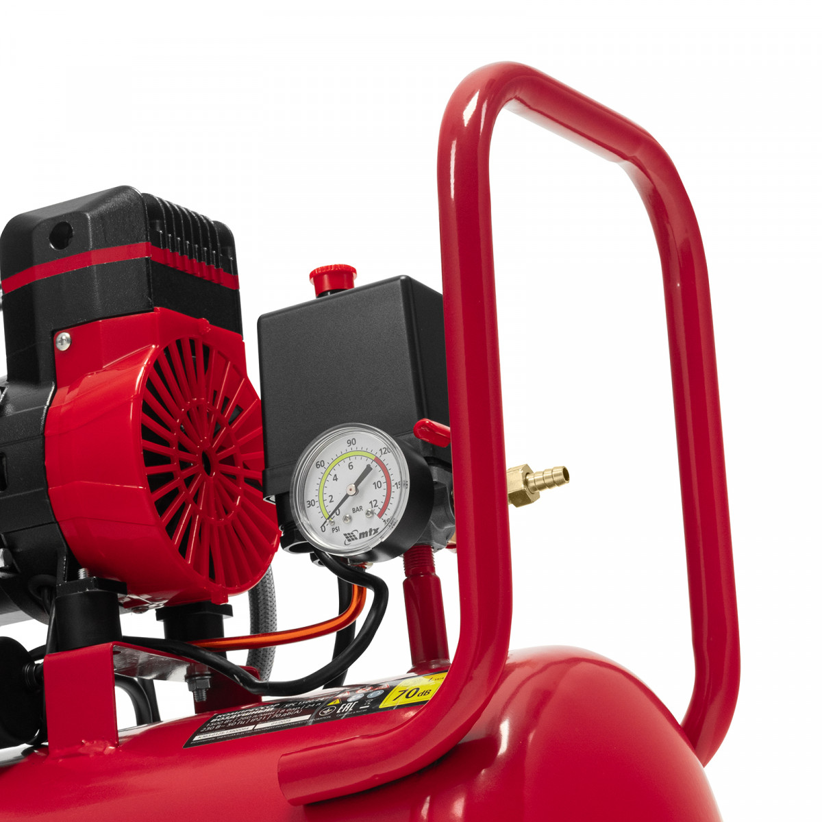 • Мобильность — благодаря транспортировочной рукоятке и колесам компрессор удобно перемещать по рабочей площадке.