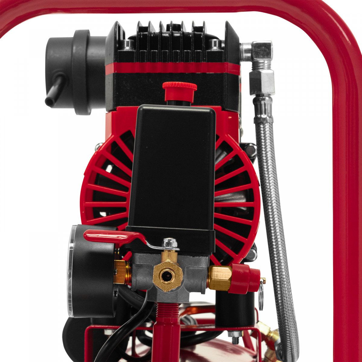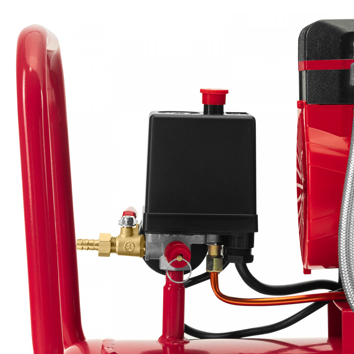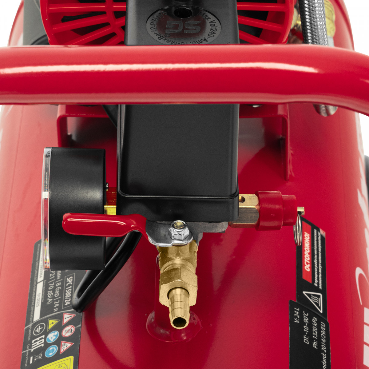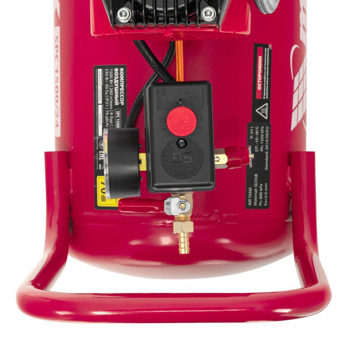 • Автономная работа — прессостат осуществляет автоматический контроль давления воздуха в ресивере, запуская и останавливая компрессор при необходимости.
