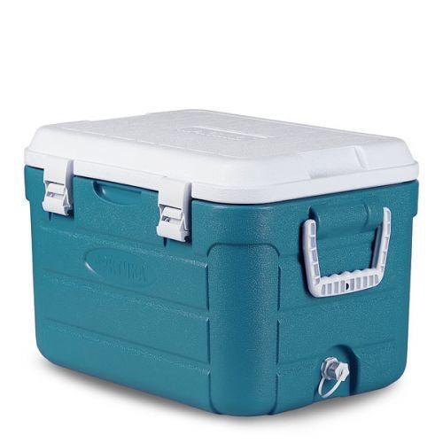 Изотермический контейнер термобокс Арктика 80 л, аквамарин 2000-80 сохраняет низкую температуру пищевых продуктов до 48 часов. Данная модель оснащена колесами для удобства транспортировки. Металлические петли удерживают крышку плотно прижатой к основанию. Внешняя сторона изготовлена их ударопрочного пластика для увеличения срока службы, внутренняя - из пищевого. Прослойка выполнена из вспененного полиуретана и имеет толщину 1 см.
