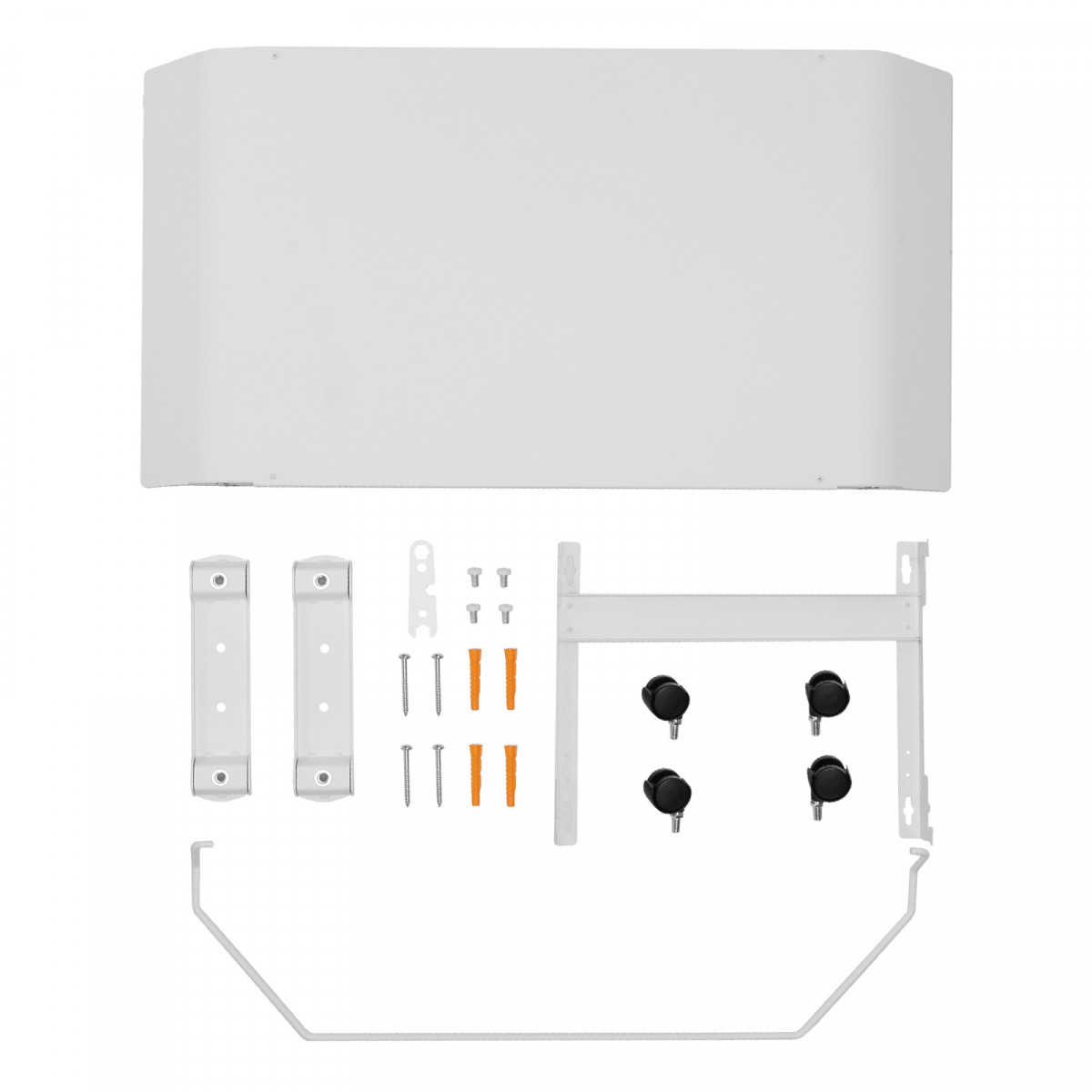 • Напольная или настенная установка — в комплект поставки включена цельнометаллическая крепежная рамка для стены, а также стальные ножки с колесами.