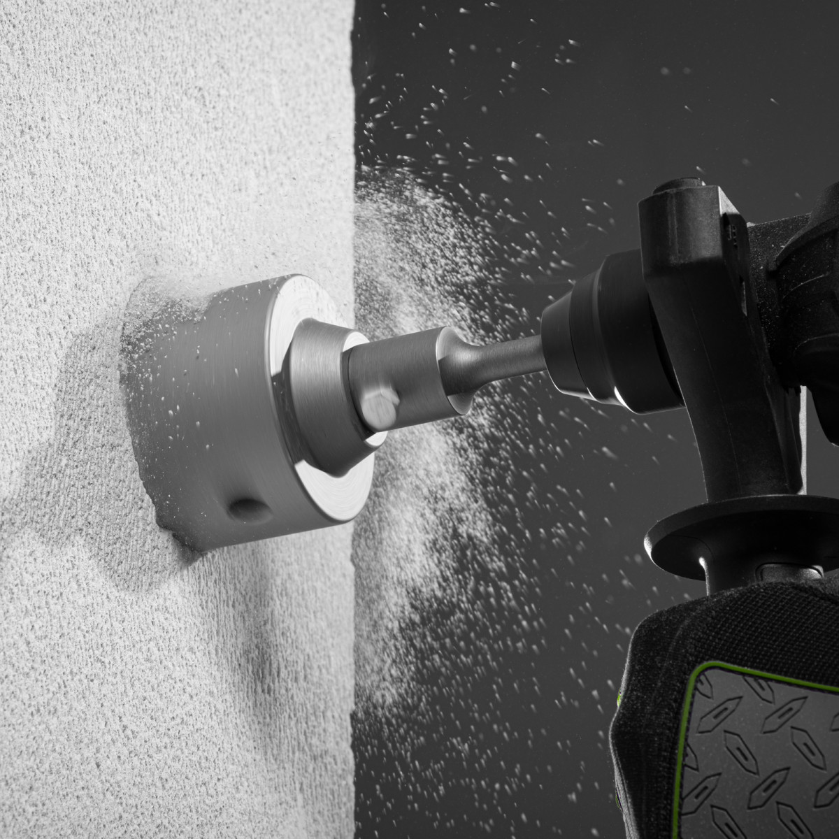 • Ровные отверстия — гладкий корпус коронки уменьшает трение, а центрирующее сверло предотвращает смещение коронки.