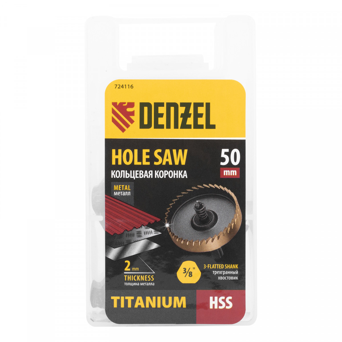 Коронка по металлу HSS, 50 мм, нитридтитановое покрытие Denzel