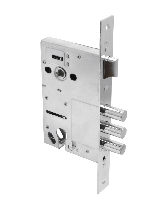 Корпус врезного цилиндрового замка Булат с тремя ригелями и защелкой предназначен для установки во входные и технические металлические двери. Стальной оцинкованный корпус. Универсальная реверсивная защелка, подходит для левых и правых дверей. Отверстия под стяжные винты. Бэксет - 60 мм. Выход ригелей- 26 мм. Диаметр ригелей -14 мм. Открывание-2 полуоборота. В комплект входят: крепежная фурнитура. Цвет лицевой планки - хром.