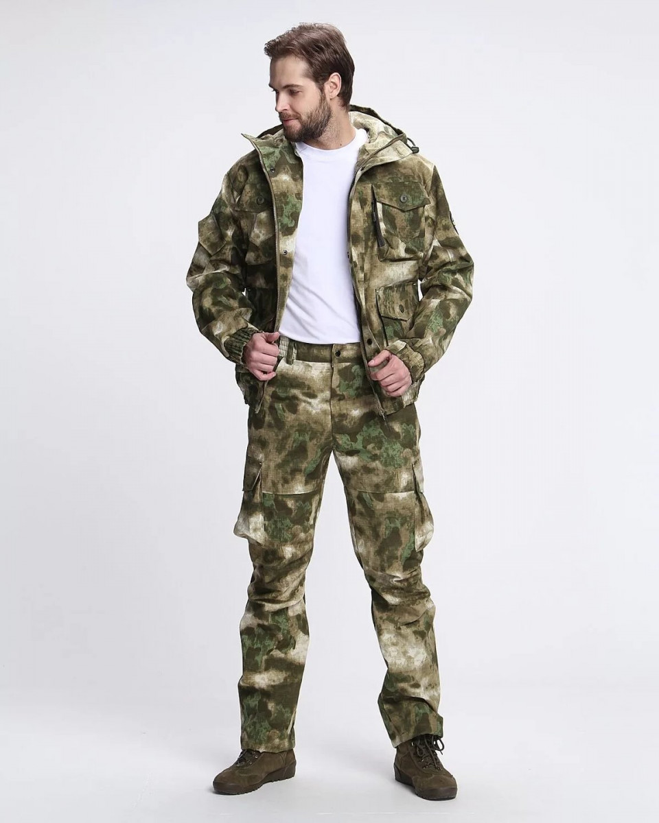 Ткань верха: Рип стоп. Состав: 80% полиэстер / 20% хлопок. Модели костюмов "ЛЕШИЙ" от компании OneRus отлично зарекомендовали себя среди любителей рыбалки, охотников и туристов. Использование современных материалов при производстве делает костюм универсальным.