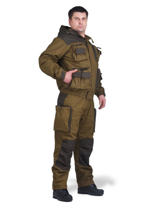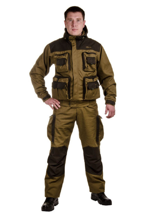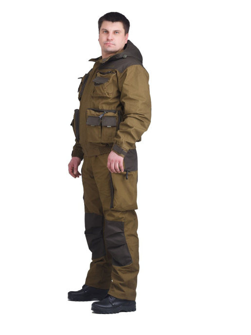 Костюм "Пайер" - практичный и надежный костюм для отдыха на природе, охоты и рыбалки. Костюм Пайер проектировался как ответ на запросы клиентов на качественный универсальный костюм. Состоит костюм из укороченной куртки и полукомбинезона. Анатомический крой позволяет легко и свободно двигаться. Куртка, благодаря обработке на поясной машинке, плотно прилегает по бедрам, не пропуская ни мошку, ни ветер. Бретели позволяют отрегулировать полукомбинезон по фигуре. В более теплую погоду спинку полукомбинезона можно отстегнуть. В костюме Payer можно разместить по карманам все необходимые мелочи: семнадцать карманов, в том числе шесть объемных и один внутренний для документов. Костюм изготавливается из надежных, проверенных временем хлопковых тканей: палатка и канвас. Эти 100% натуральные ткани прекрасно защищают от ветра, почти мгновенно сохнут, пропускают воздух (позволяя телу "дышать"). Места повышенного износа имеют дополнительное усиление мембранной тканью "Кошачий глаз", которая не пропус