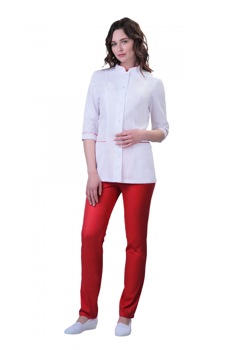 Костюм медицинский женский №406 тк.ТиСи DoctorBIG белый/красный
