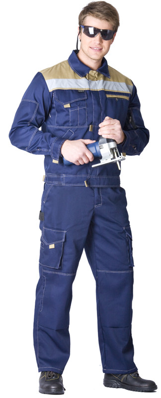 Стильный, комфортный костюм для ИТР.Куртка укороченная на поясе с патами на контактной ленте. Центральная застежка на молнии с ветрозащитной планкой на контактной ленте, Отложной воротник. Множество функциональных накладных карманов на полочке и рукаве. Спинка с объемными складками в области проймы. В области локтя налокотники. Манжеты на контактной ленте. По кокетке проложена СОП 50мм.Полукомбинезон: высокая полочка и спинка с плечевыми швами на эластичной ленте, Пояс на эластичной ленте со шлевками. Центральная застежка на молнию, Верхние и задние накладные карманы, и боковой карман под инструмент, Грудка с накладным карманом, Усиление в области коленей с отверстием для амортизационных накладок.Ткань: смесовая (65% полиэфир, 35% хлопок), пл. 240 г/м2, ВО