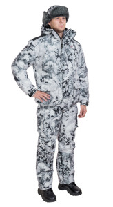 Енисей костюм Костюм для зимней ходовой охоты. Отличается «безшумностью», отсутствием бликования на солнце и надежной защитой от мокрого снега и влаги. Материал: верх - мембранное трикотажное полотно подклад - Taffeta подкладочная/Fleece утеплитель - AirFIBRE Температурный режим: от -10 до -35С Комплектность: куртка, полукомбинезон Характеристика: укороченная на эластичном поясе, с застежкой на двухзамковую молнию, защищенную ветрозащитной планкой на кнопках защита подбородка от соприкосновения с молнией втачной анатомический капюшон с стяжками объема в двух плоскостях и с козырьком, форма которого регулируется при помощи каркаса внутренняя поверхность капюшона из приятного на ощупь и хорошо сохраняющего тепло Fleece для более комфортного тепла, в капюшоне есть стяжка по линии шеи два «теплых» кармана на груди два нижних объемных кармана с клапаном на подкладе три кармана, один из которых из сетки- увеличенного размера, в который легко поместятся шапка, пер