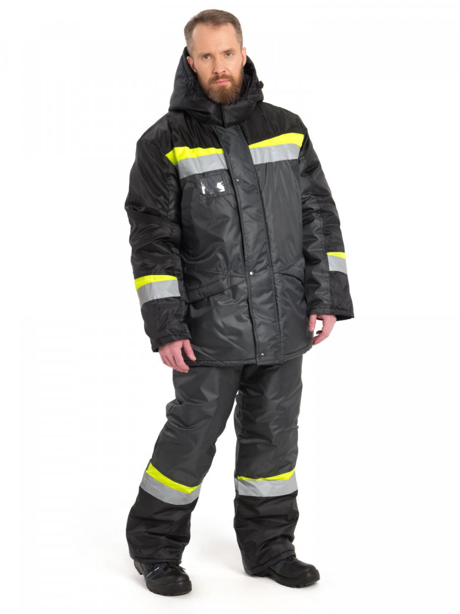 Костюм зимний ГРАДУС куртка+п/к, оксфорд, серый/черный/лимонный