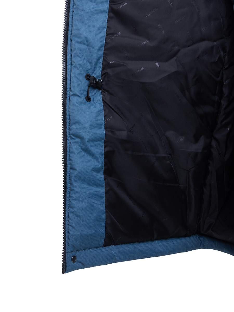 Куртка с высоким воротником и несъемным капюшоном с регулировкой по высоте и глубине.