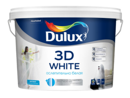 Краска Dulux Новая ослепительно белая матовая 3D в/д краска для стен и потолков 5л