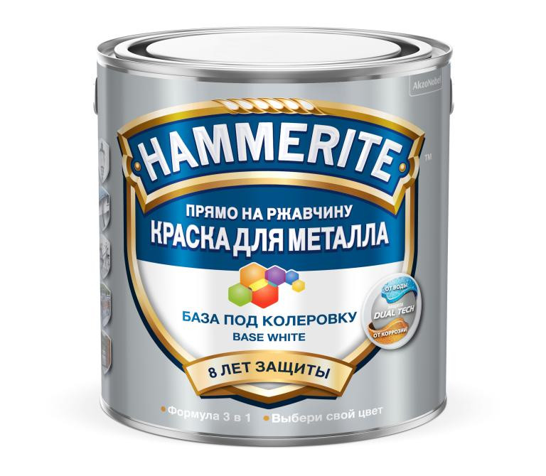 Благодаря технологии Dual Tech c добавлением воска, Hammerite обеспечивает двойную защиту металлической поверхности от воды и коррозии до 8 лет. Образует износостойкое и эластичное покрытие, устойчивое внутри и снаружи помещений. Краска Hammerite содержит силикон, который создает усиленный барьер для влаги и грязи. Покрытие устойчиво к воздействию бытовых химикатов и кратковременному воздействию моторного топлива и масел.