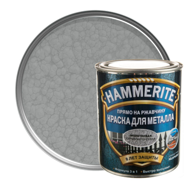 Краска Hammerite молотковая серебристо-серая 0,75л по металлу прямо на ржавчину 3в1