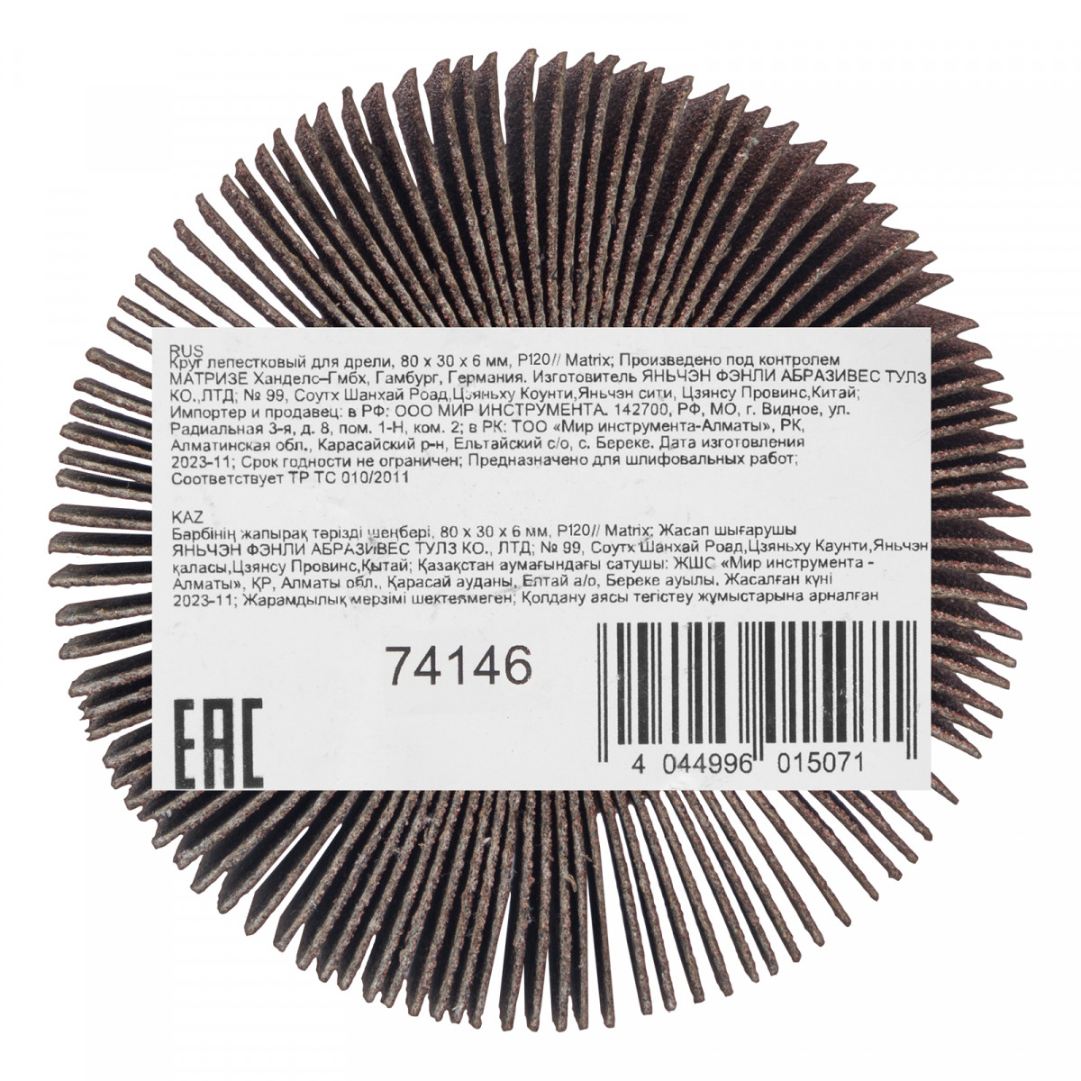 Круг лепестковый для дрели, 80 х 30 х 6 мм, P 120 Matrix