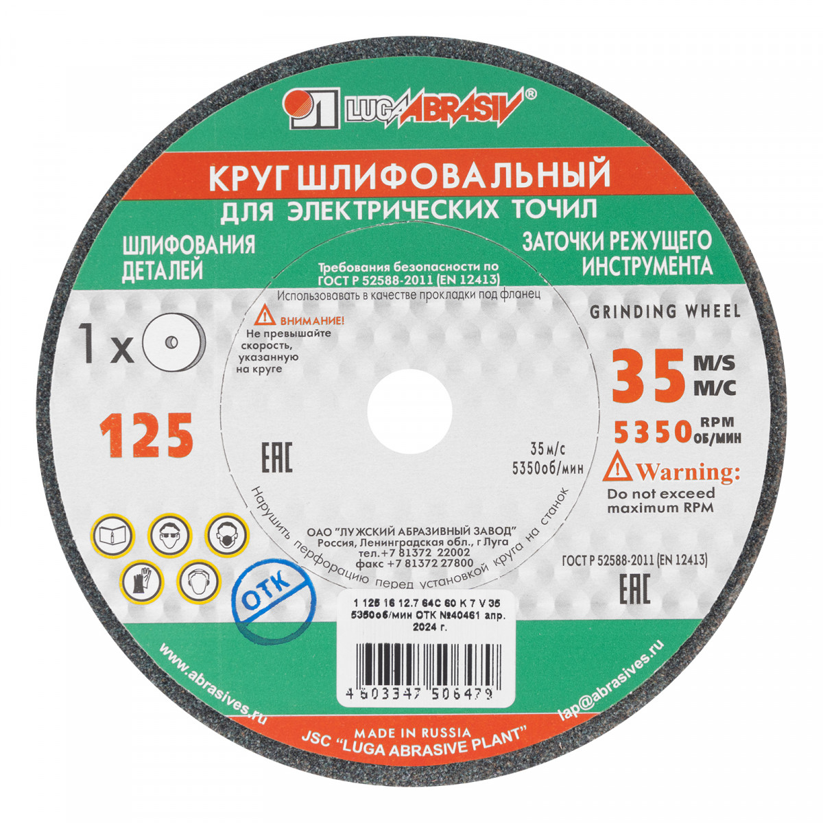 Круг шлифовальный, 125 х 16 х 12.7 мм, 63С, F60, (K, L) "Луга"