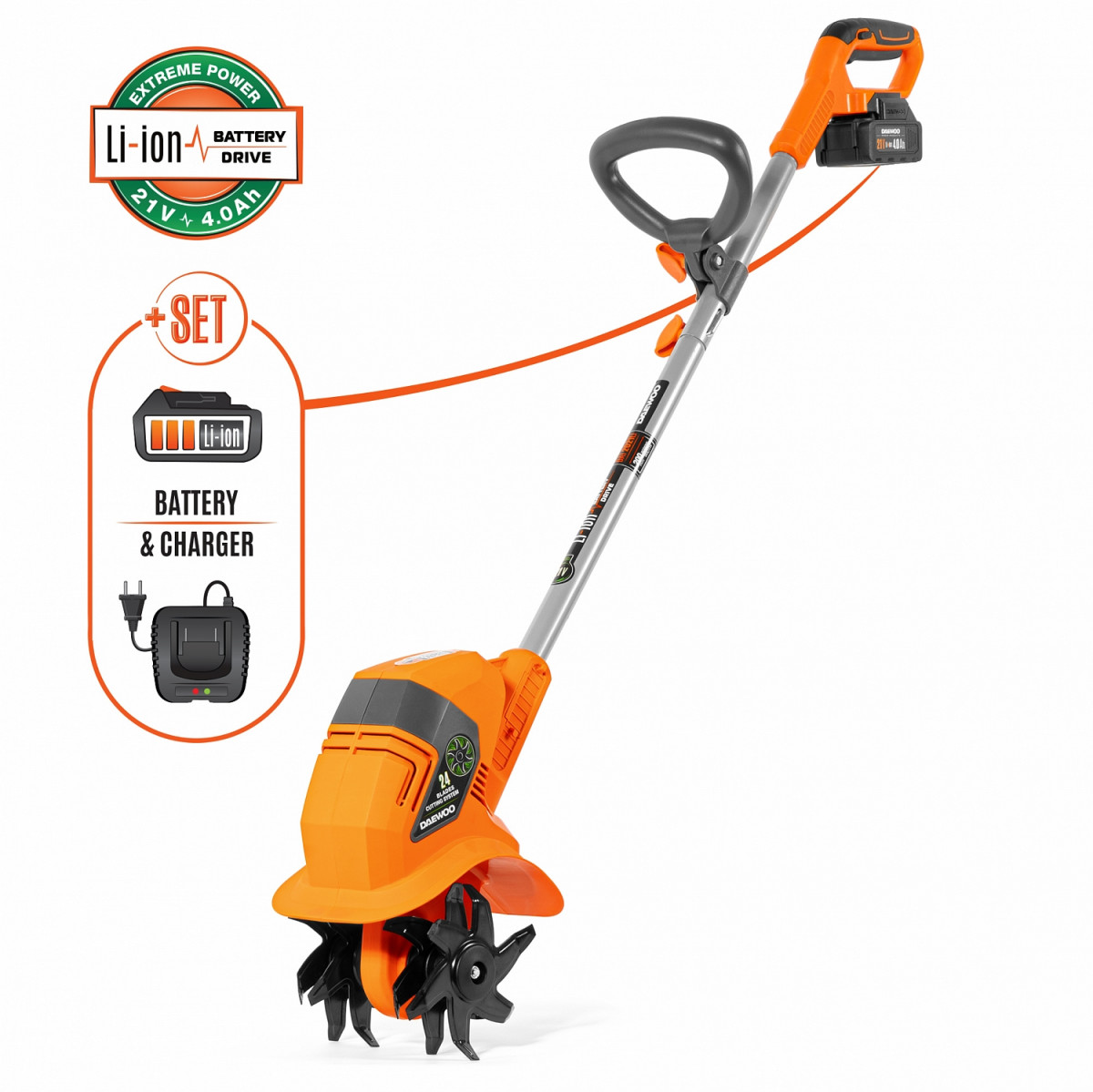 Культиватор аккумуляторный DAEWOO DAT 2021Li 21В (АКБ 4Ач и ЗУ в комплекте)