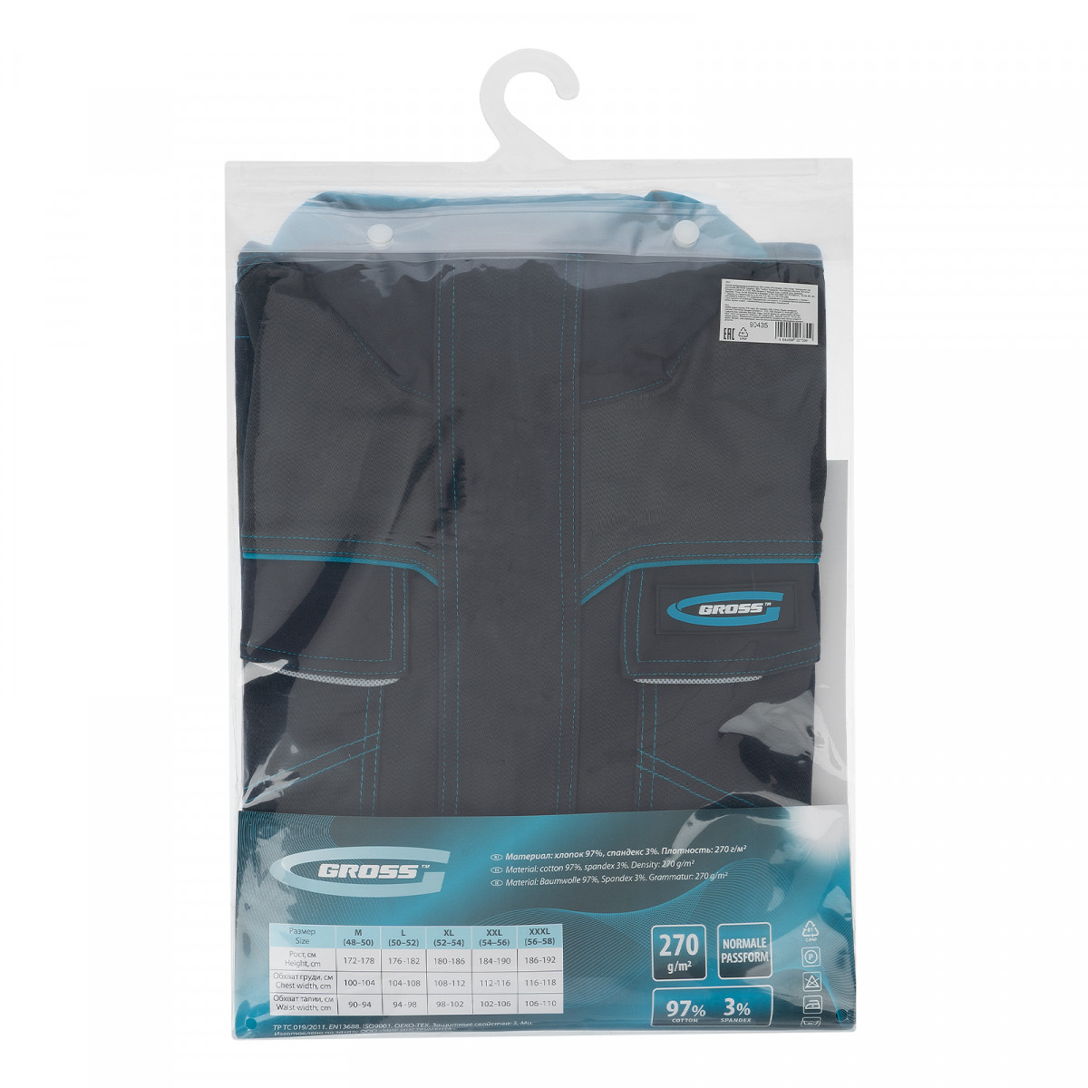 Профессиональная рабочая куртка Gross 90435 размера XXL защищает пользователя от общих производственных загрязнений, нетоксичной пыли, ветра и незначительных механических воздействий. Рассчитана на рост 184-190 см и предназначена для использования в теплое время года или в отапливаемом помещении. Куртка изготовлена из ткани с 97-процентным содержанием хлопка и 3-процентным содержанием спандекса. За счет наличия хлопковых волокон в составе ткань прекрасно пропускает воздух и приятна на теле, а спандекс делает ее более эластичной, поэтому в куртке удобно работать. Одежда выполнена в практичном темно-сером цвете.