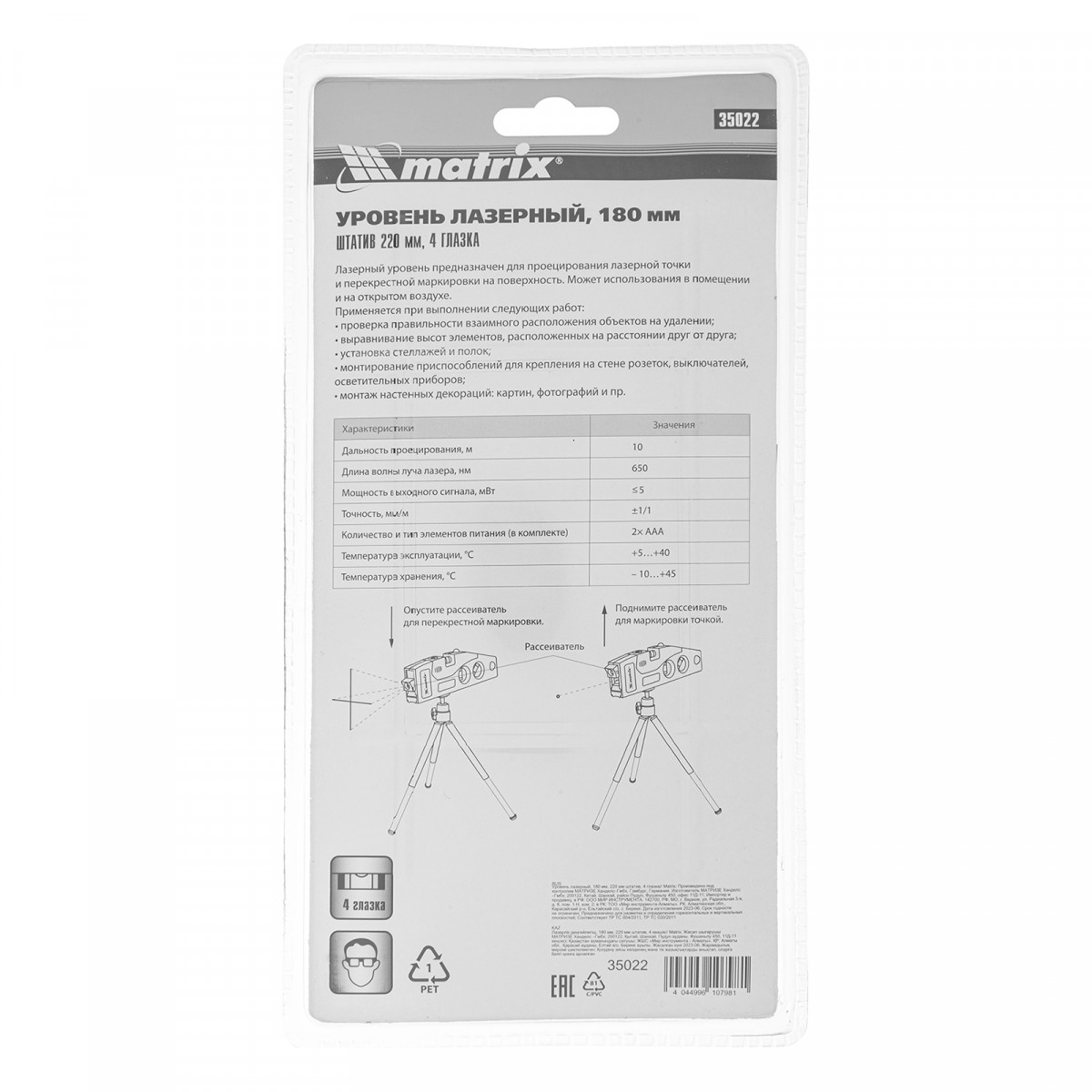 Лазерный уровень, 180 мм, 220 мм штатив, 4 глазка Matrix