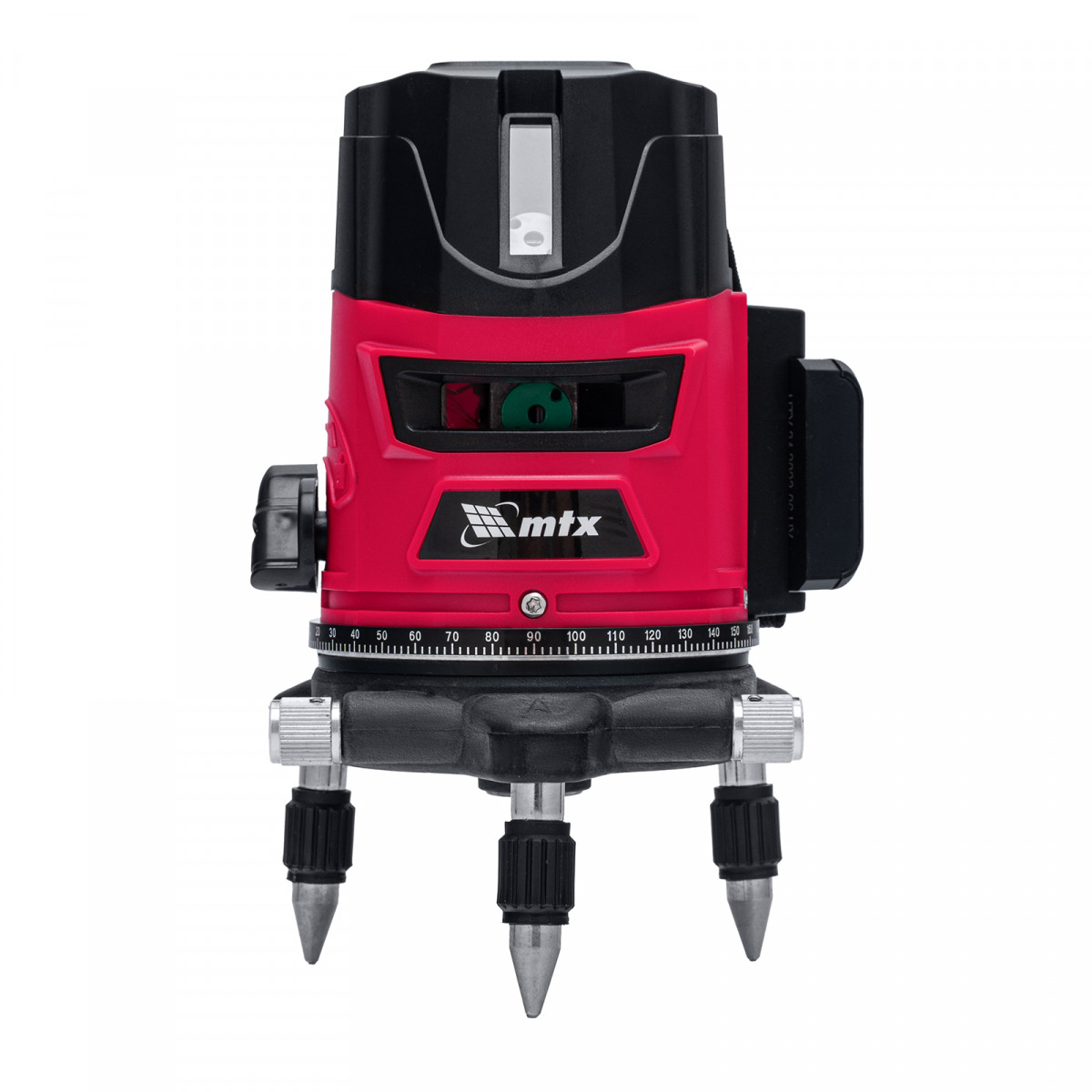 Лазерный уровень MTX CRL-30G 35036 с резьбой 5/8″ под штатив, в комплекте с батарейками, проецирует на поверхность 1 горизонтальный, 4 вертикальных луча зеленого цвета и точку отвеса дальностью до 30 м. Подходит для бытового применения в помещениях. Погрешность измерений составляет всего ±1,5 мм 5 м.