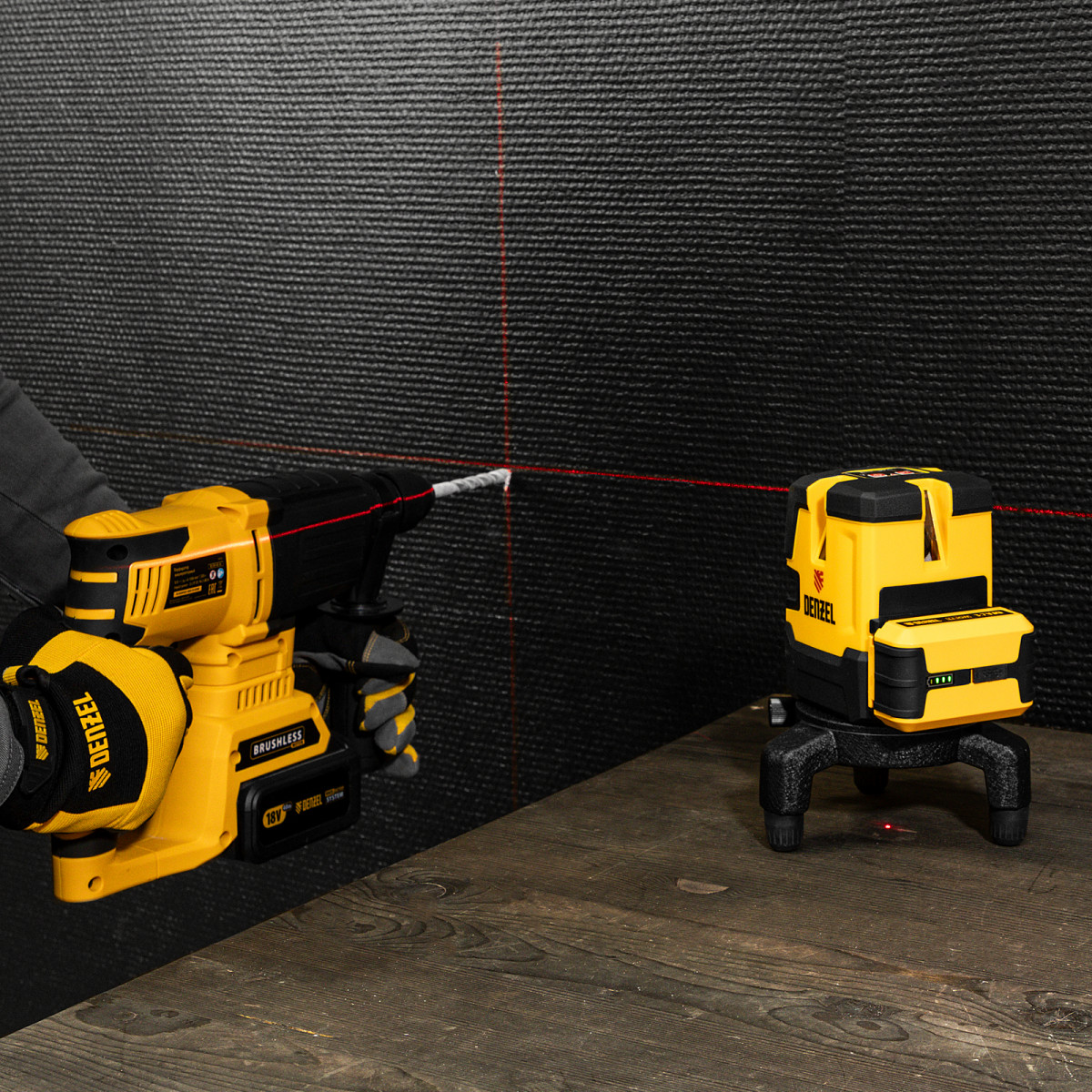 Лазерный уровень LX 05 Red, 20 м, 635 нм, аккумулятор Li 5200 mAh, резьба 5/8" Denzel