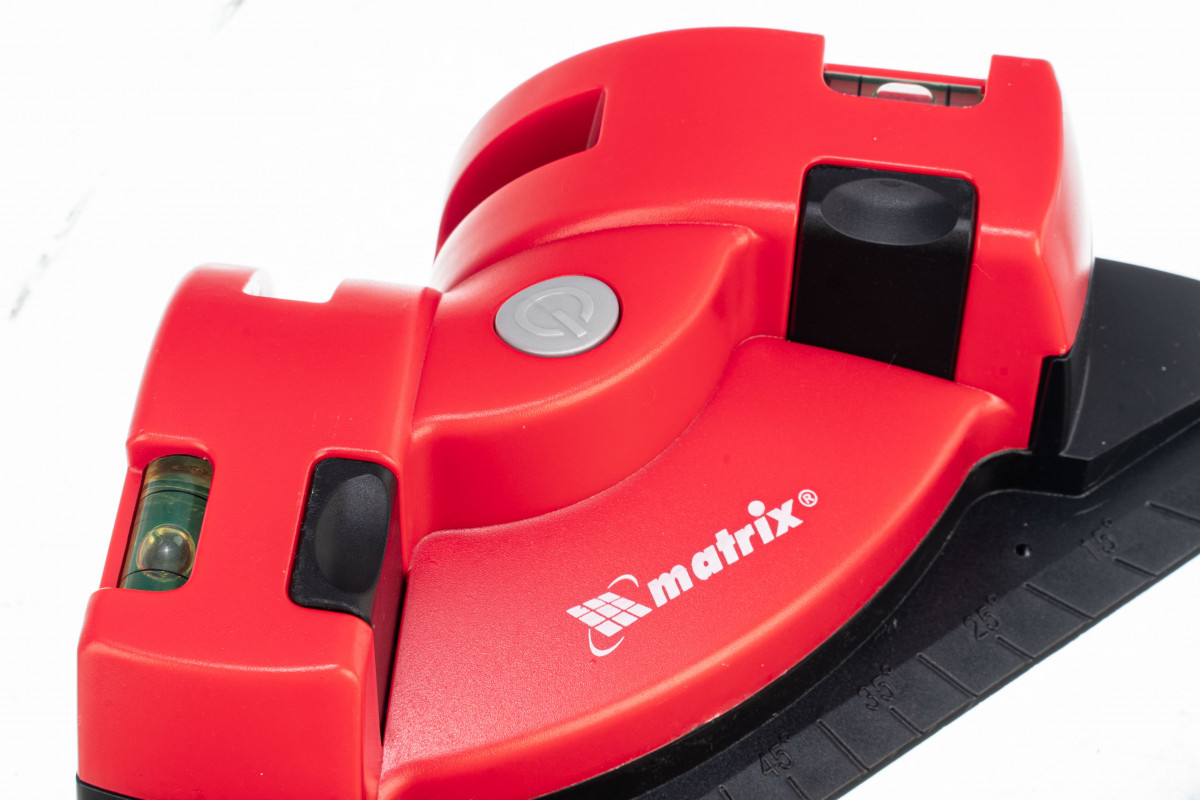 Лазерный уровень Matrix 35007 в форме угольника предназначен для разметки поверхностей по горизонтали, вертикали и диагонали. Проецирует 2 лазерные линии под углом 90 градусов на поверхность, параллельно которой он установлен. Угловая форма позволяет использовать инструмент для укладки покрытия на полу, например, ламината, паркета или плитки, или для отделки стен, планировки розеток и выравнивания конструкций.