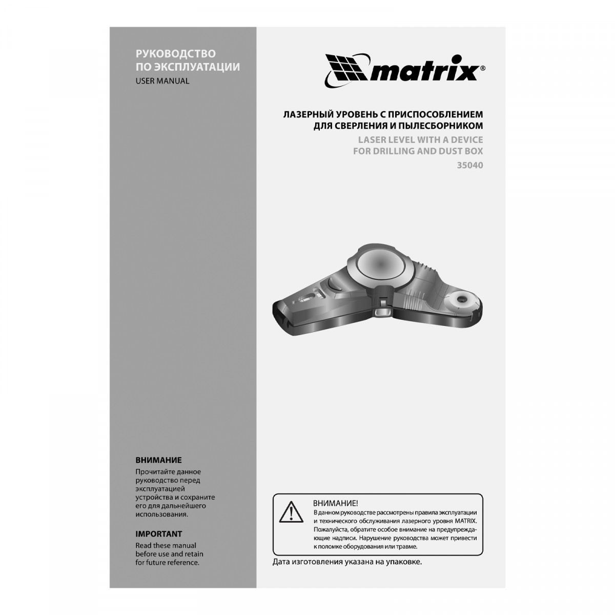 Лазерный уровень с приспособлением для сверления и пылесборником Matrix